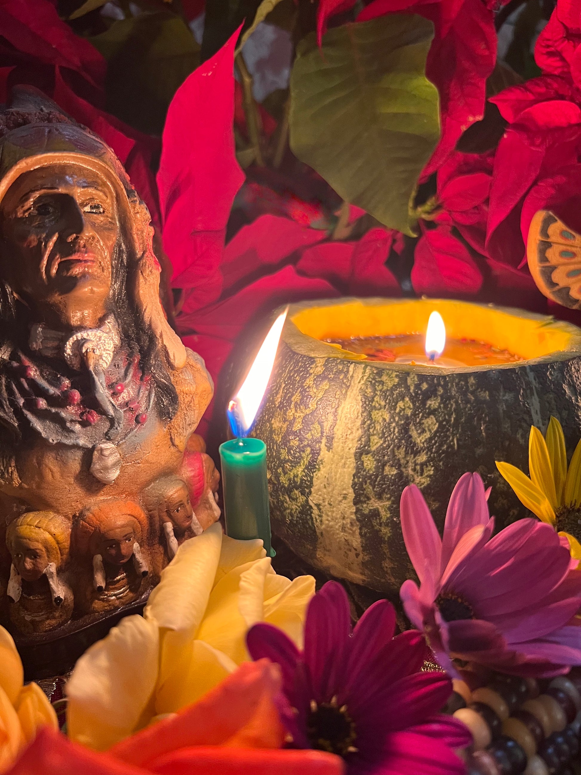 Many work a lamp for 7 Indios throughout a career, spiritual war, business venture, or other issues. It burns hotter than a 7-day candle and can work more quickly. We work this lamp for approximately two weeks. We pray over this lamp every day until it is complete.