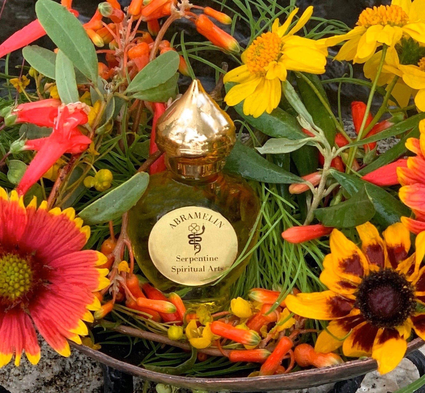 We created our Abramelin Oil on August 12th during the Feast for the First Night of the Beast and his Bride. We followed Aleister Crowley’s recipe when making this oil.