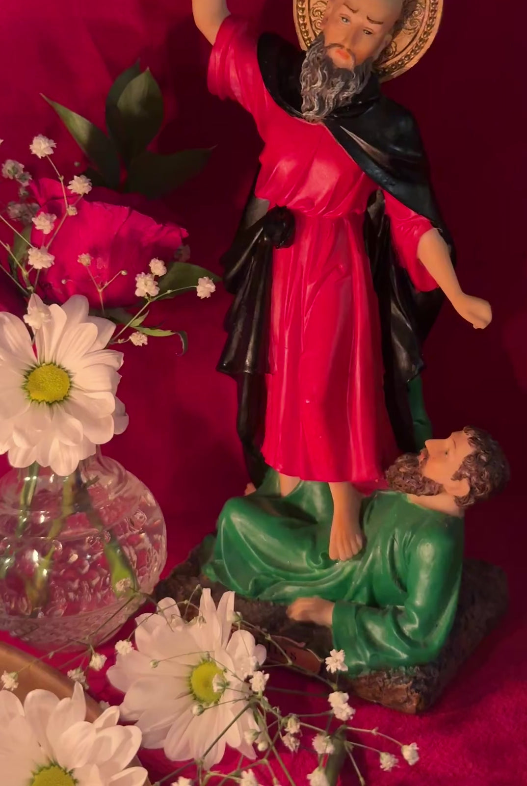 Baron del Cemeterio is the leader of the Ghede, black, or cemetery division in Sanse (Puerto Rican Vodou). Each spirit or Lwa syncs with a Catholic saint. Baron of the Cemetery is syncretized with Saint Elijah or San Elias. He is similar to Baron Samedi who is syncretized with Saint Martin of Porres or Saint Expedite in Haitian Vodou. In Sanse, Saint Martin represents Gede Kafou.⁣