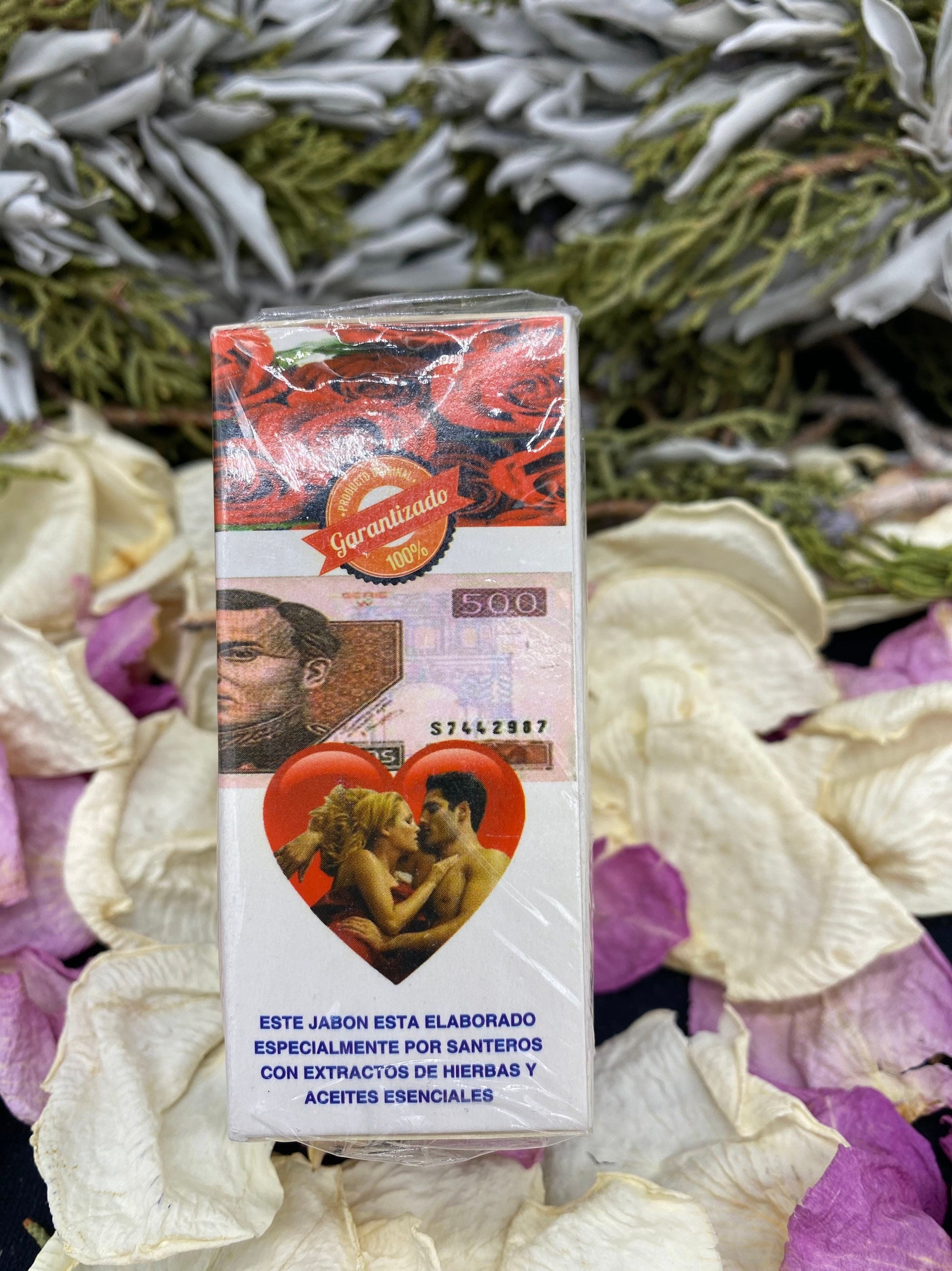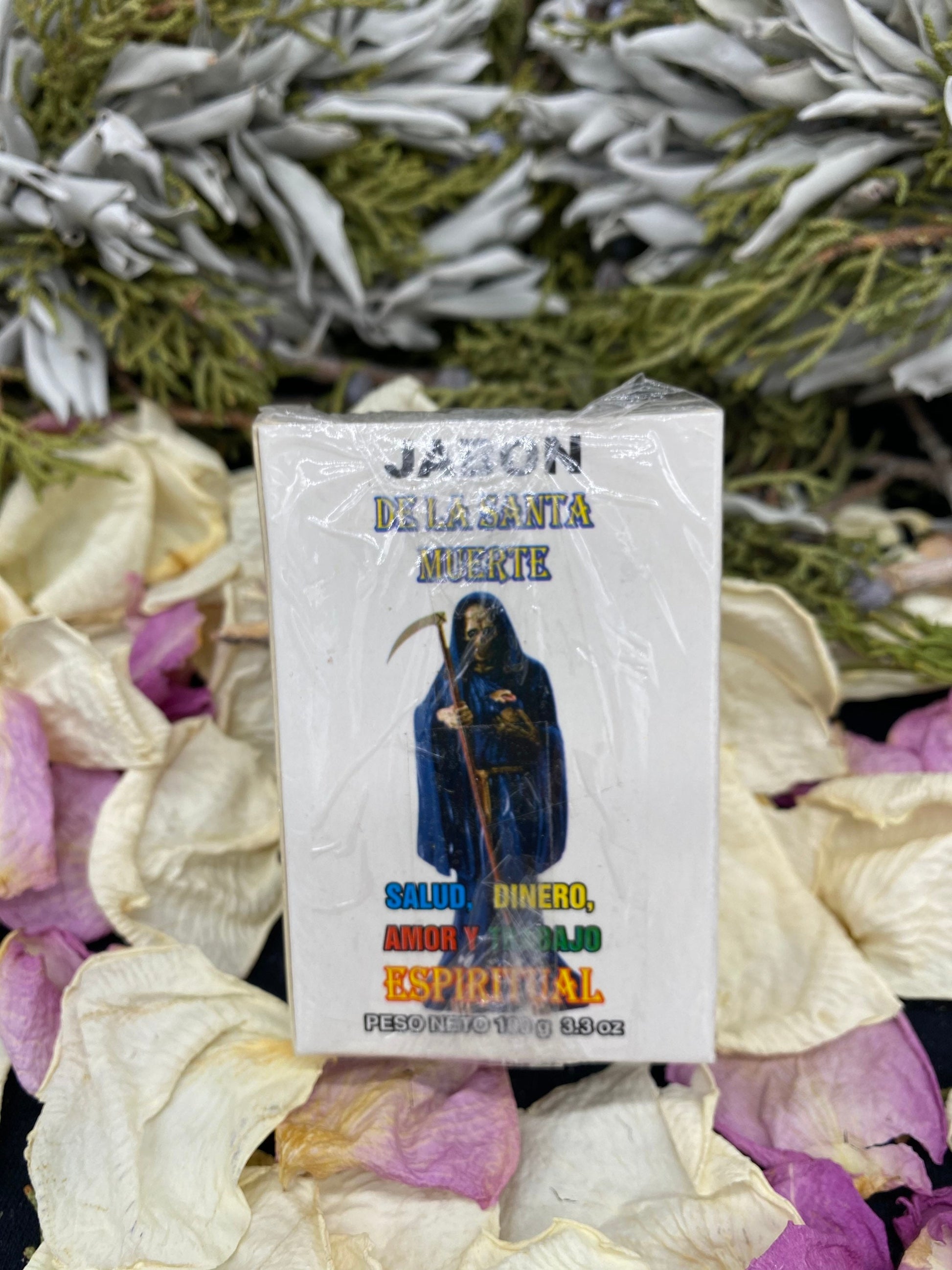 This soap is to use with La Santa Muerte to attract money, love, work, and health. It is approximately 4” and scented. It is made in Mexico.