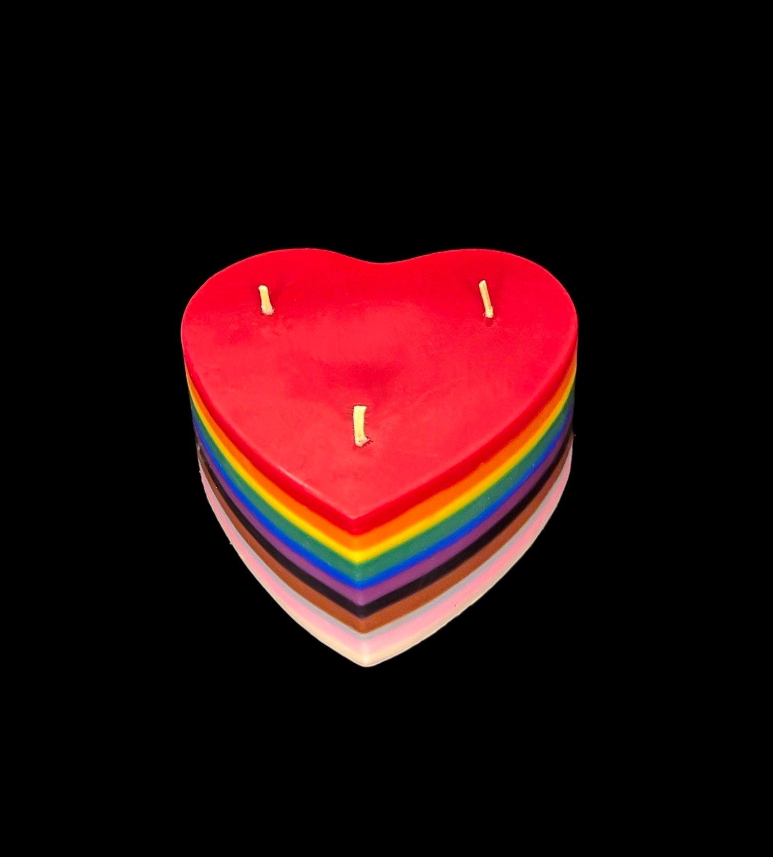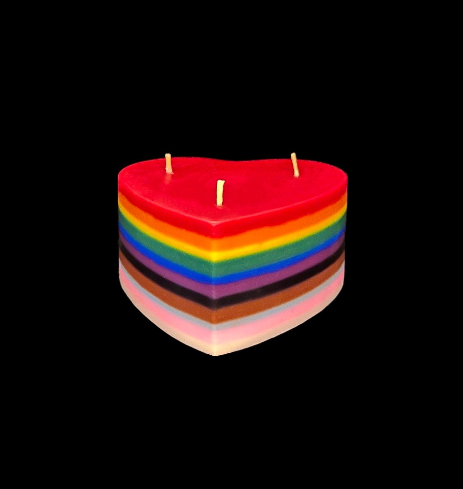 Large Queer Pride Heart Candle + Diversity + Love Wins