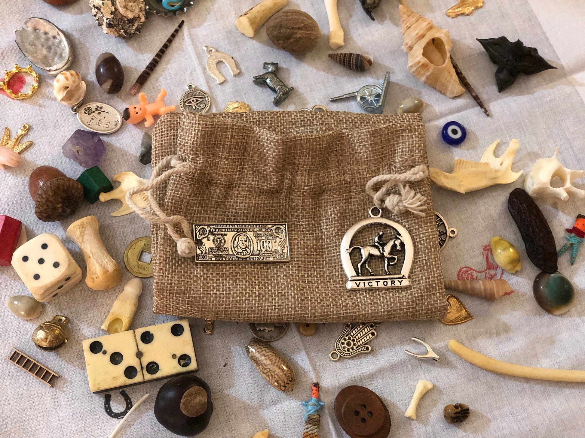Deluxe Burlap Bone, Shell, and Trinket Divination Collection (121 Pieces)