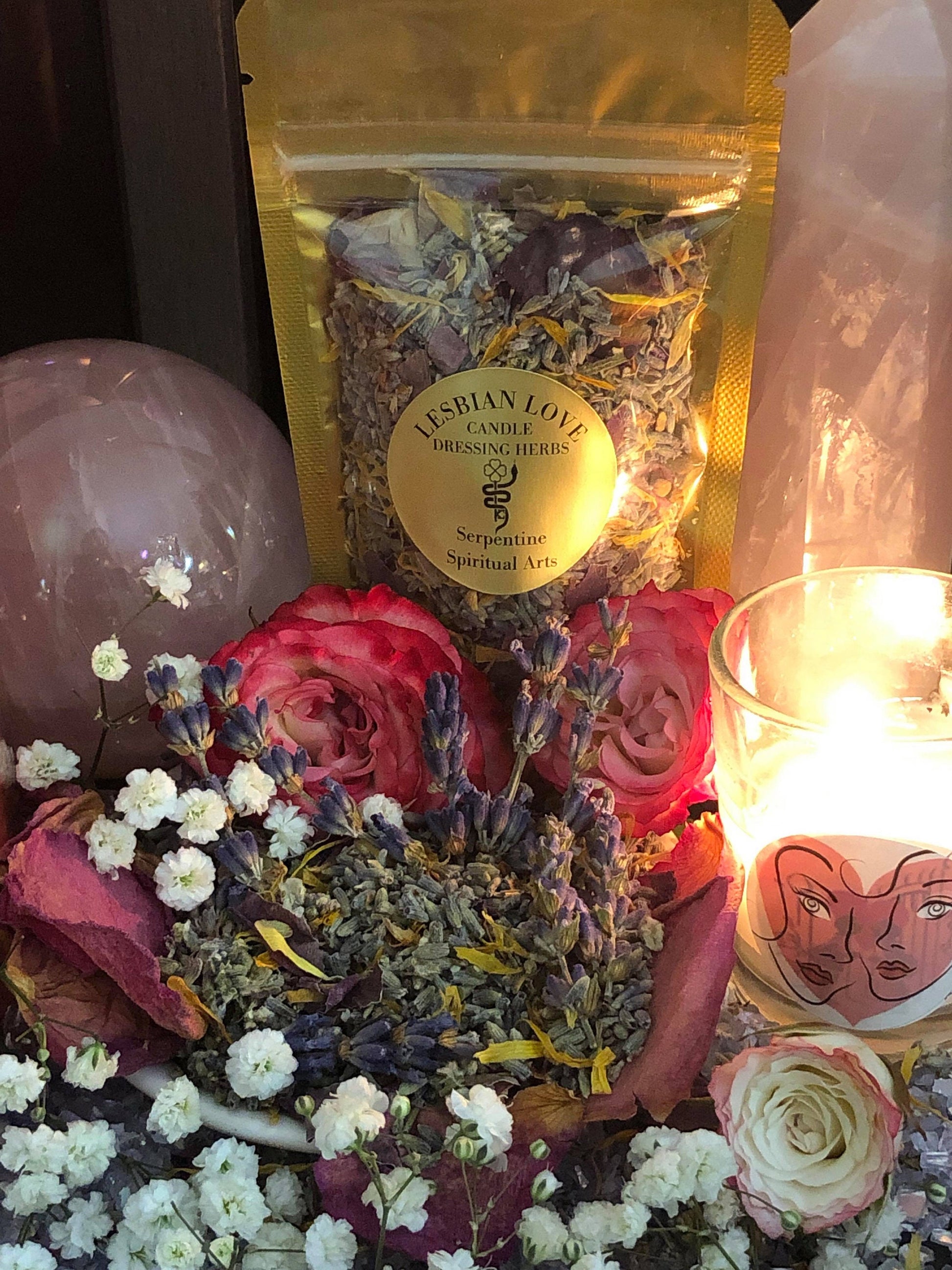 Our Lesbian Love Herbs allegedly assist women in attracting a female lover or renewing an ongoing lesbian relationship. Herb blends are often used for fixing candles, dressing workings, and stuffing doll babies and mojo bags. The herb mix contains mostly organic ingredients that are often associated with lesbian love. The bag weighs approximately 1 or 3 oz and contains mostly organic and wildcrafted ingredients and herbs. CAUTION: This product is FOR EXTERNAL USE ONLY. Keep it out of the reach of children, and do not ingest it. Please be sure to keep this oil away from your children and pets.