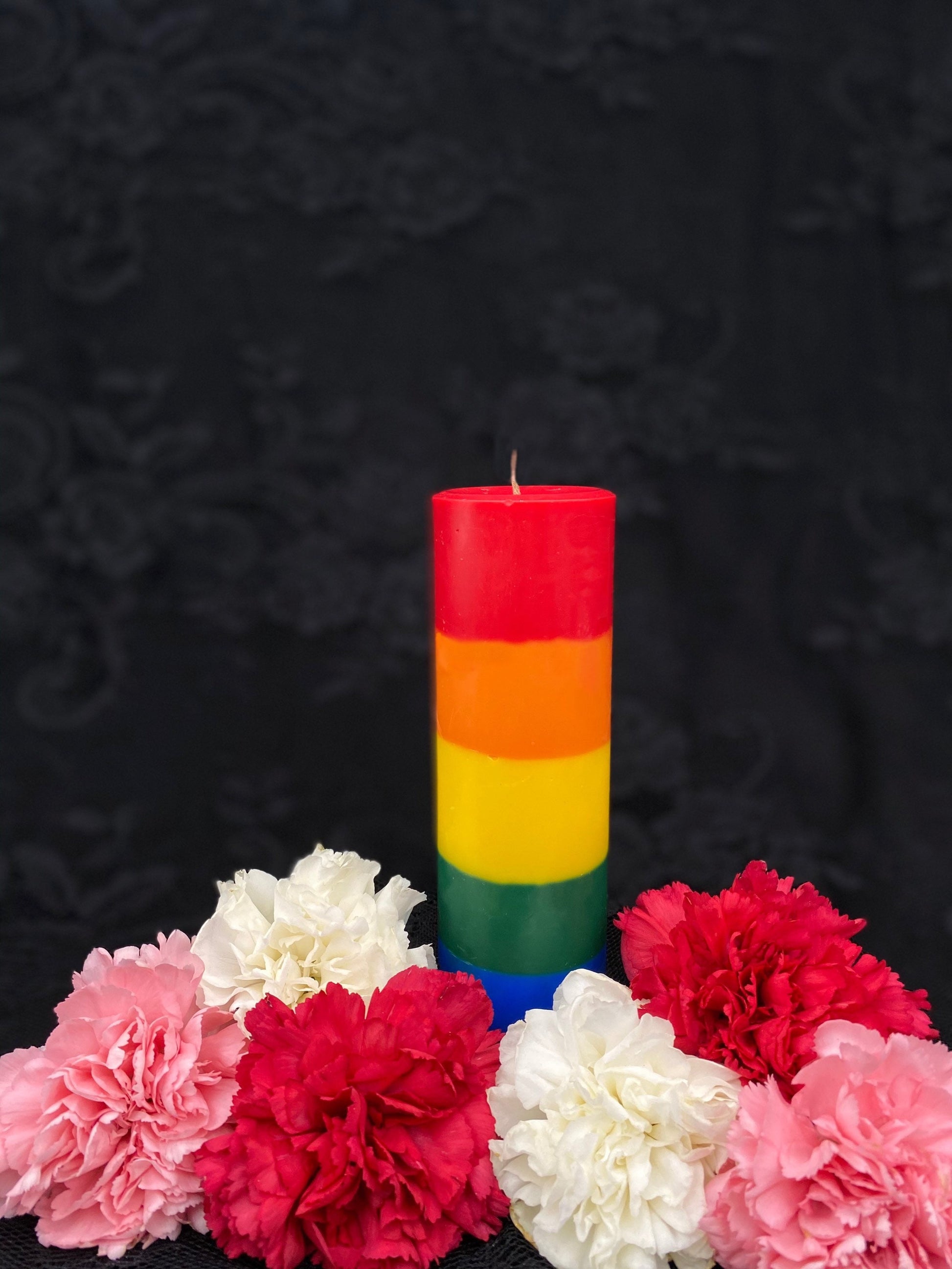 LGBTQ+ Pride Rainbow Pillar Candle + Queer