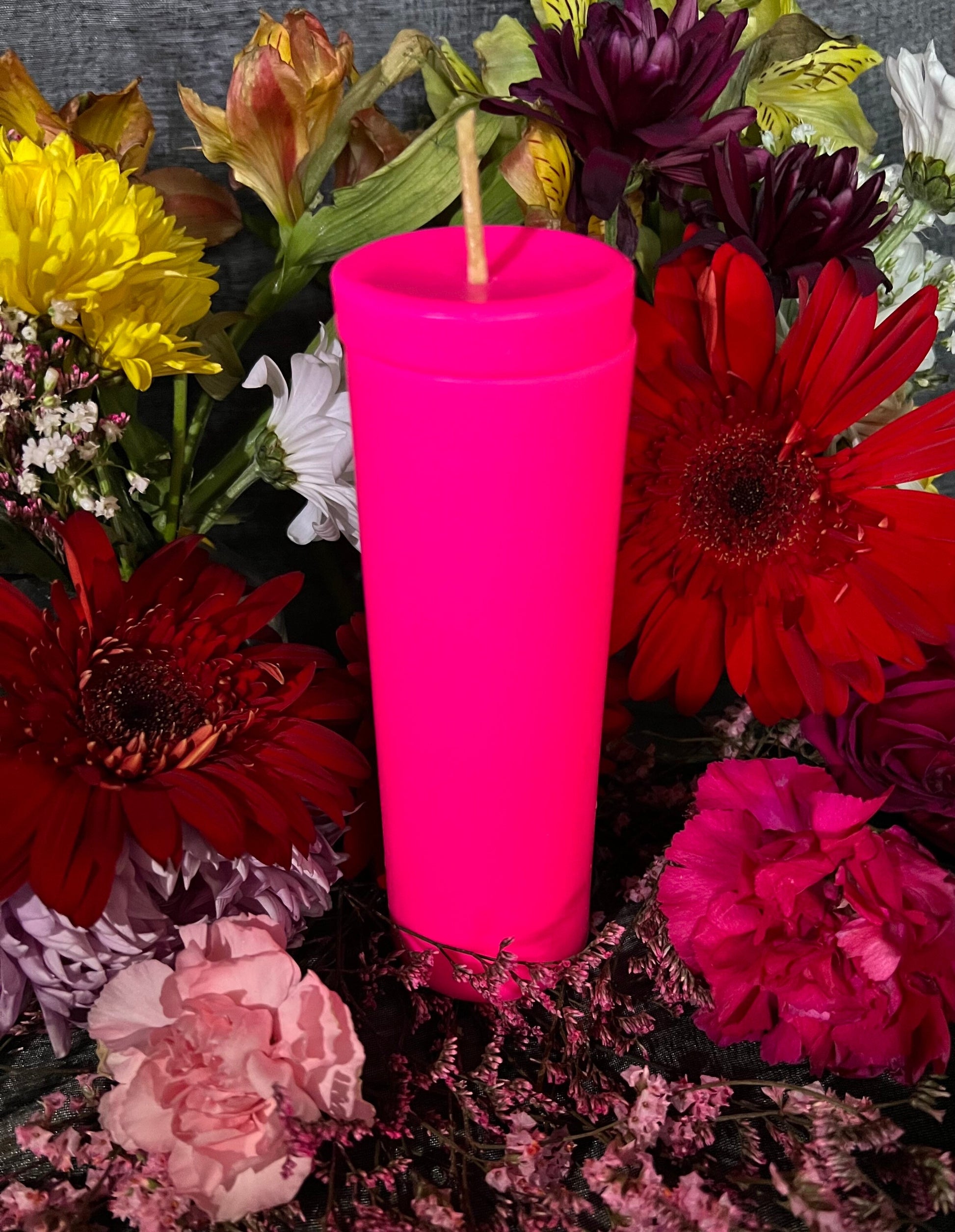 Neon Loadable Pillar Candle + 6” x 2”+ Glows under Blacklight