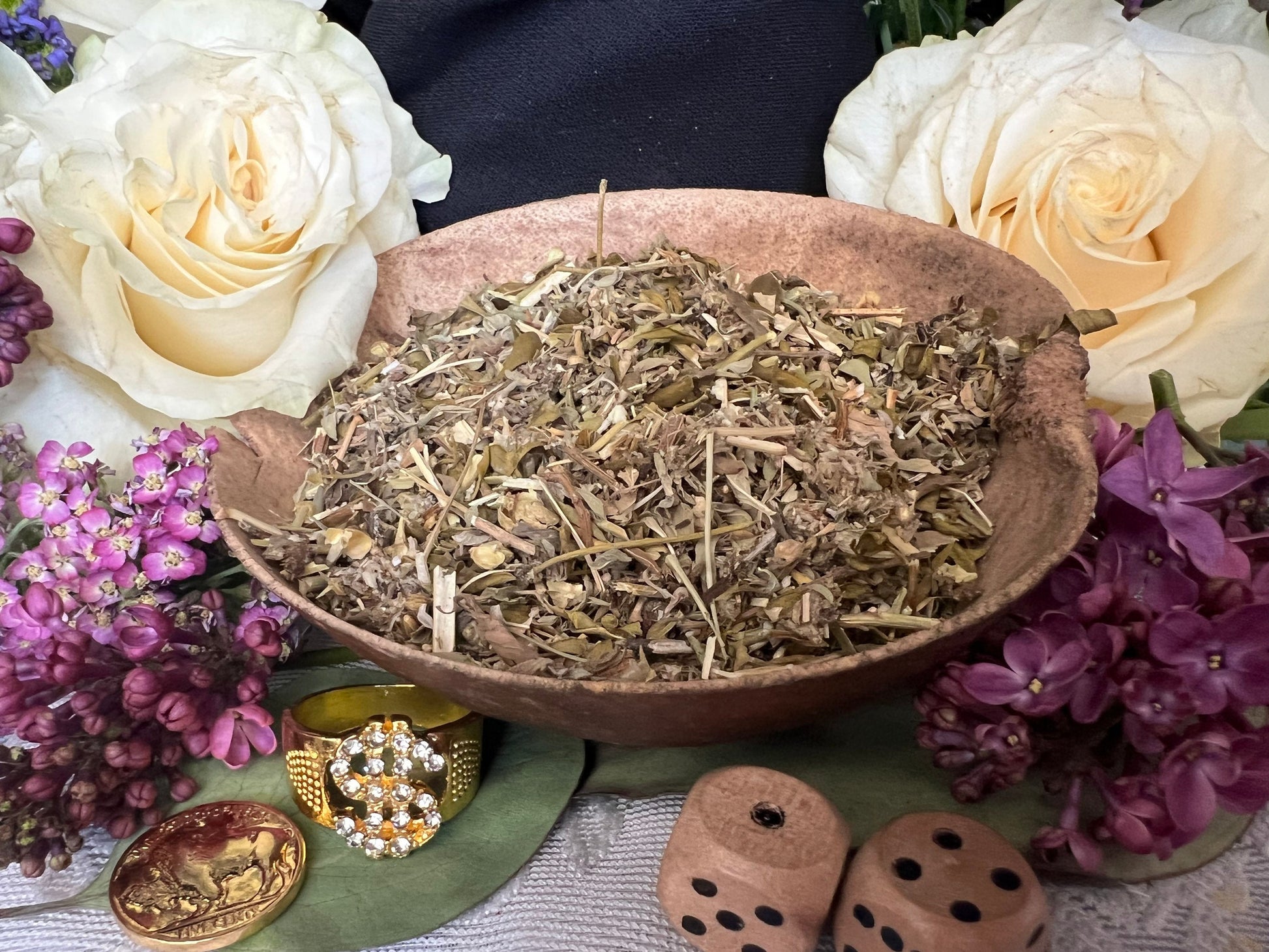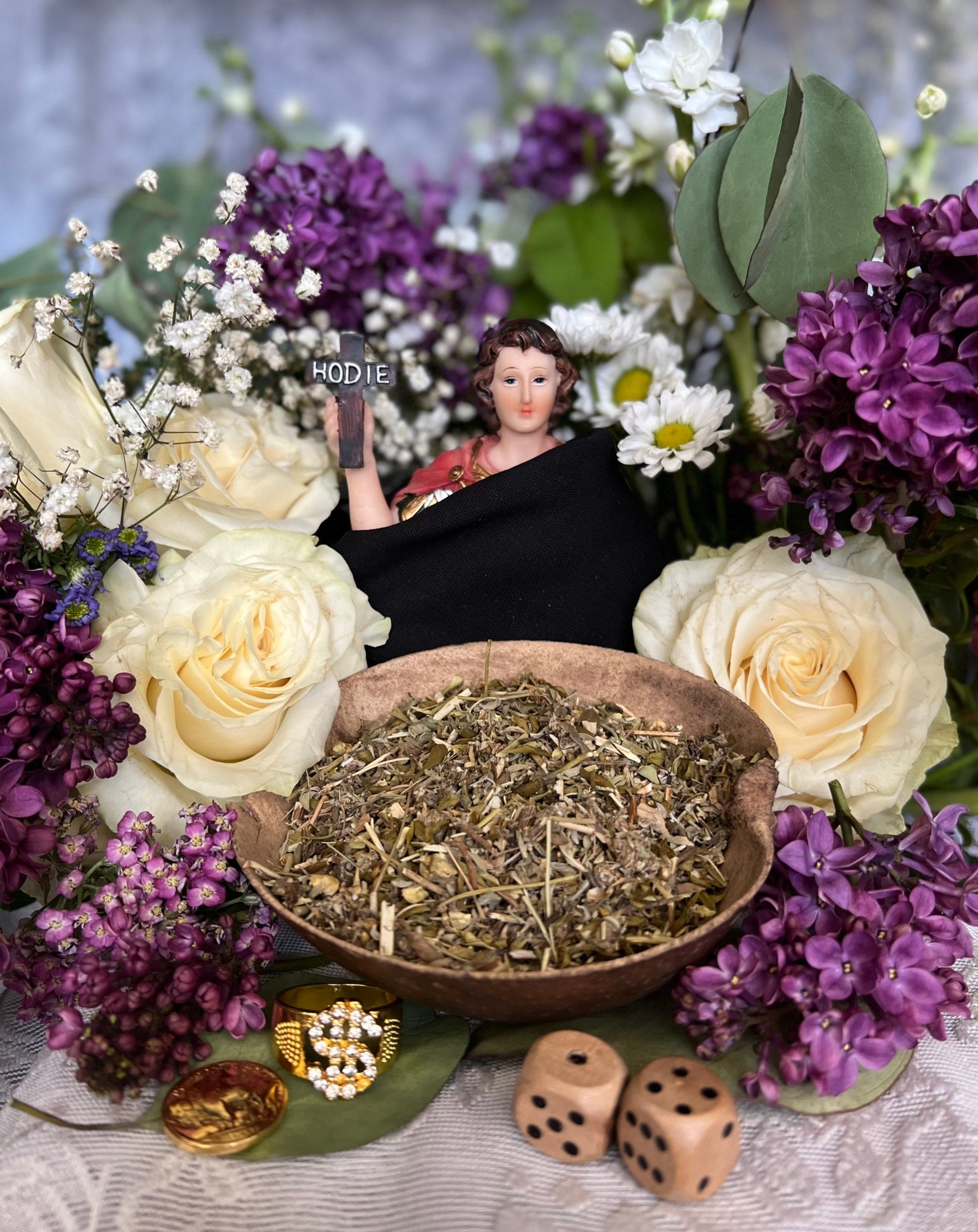 Herb blends are often used for fixing candles, dressing workings, and stuffing doll babies and mojo bags. The bag weighs approximately 1 oz or 3 oz and contains mostly organic ingredients