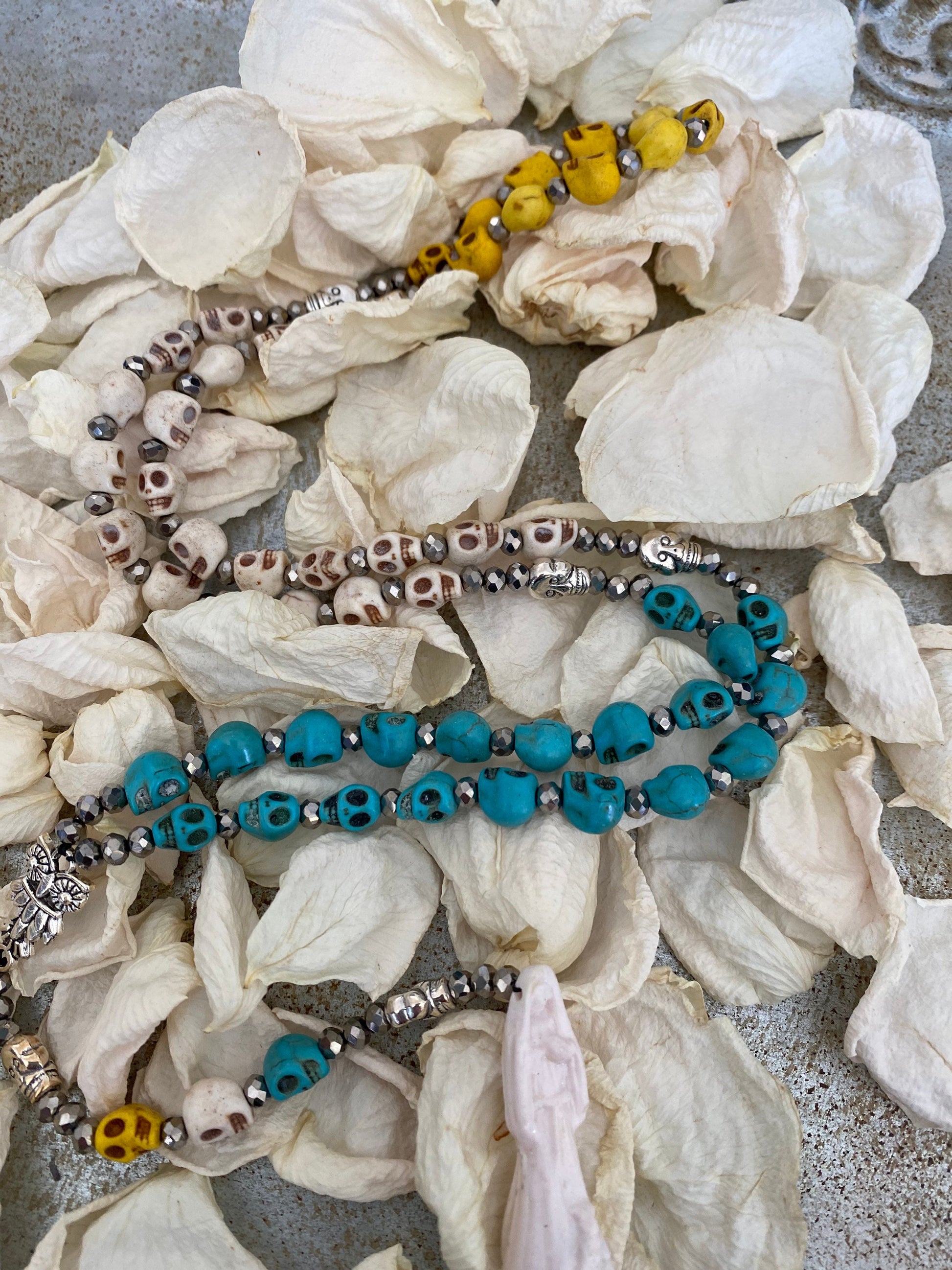 Santa Muerte Abre Camino Rosary de Hilo + Magnesite & Howlite Skulls + Traditional Mexican Road Opening + Handcrafted + Rosario