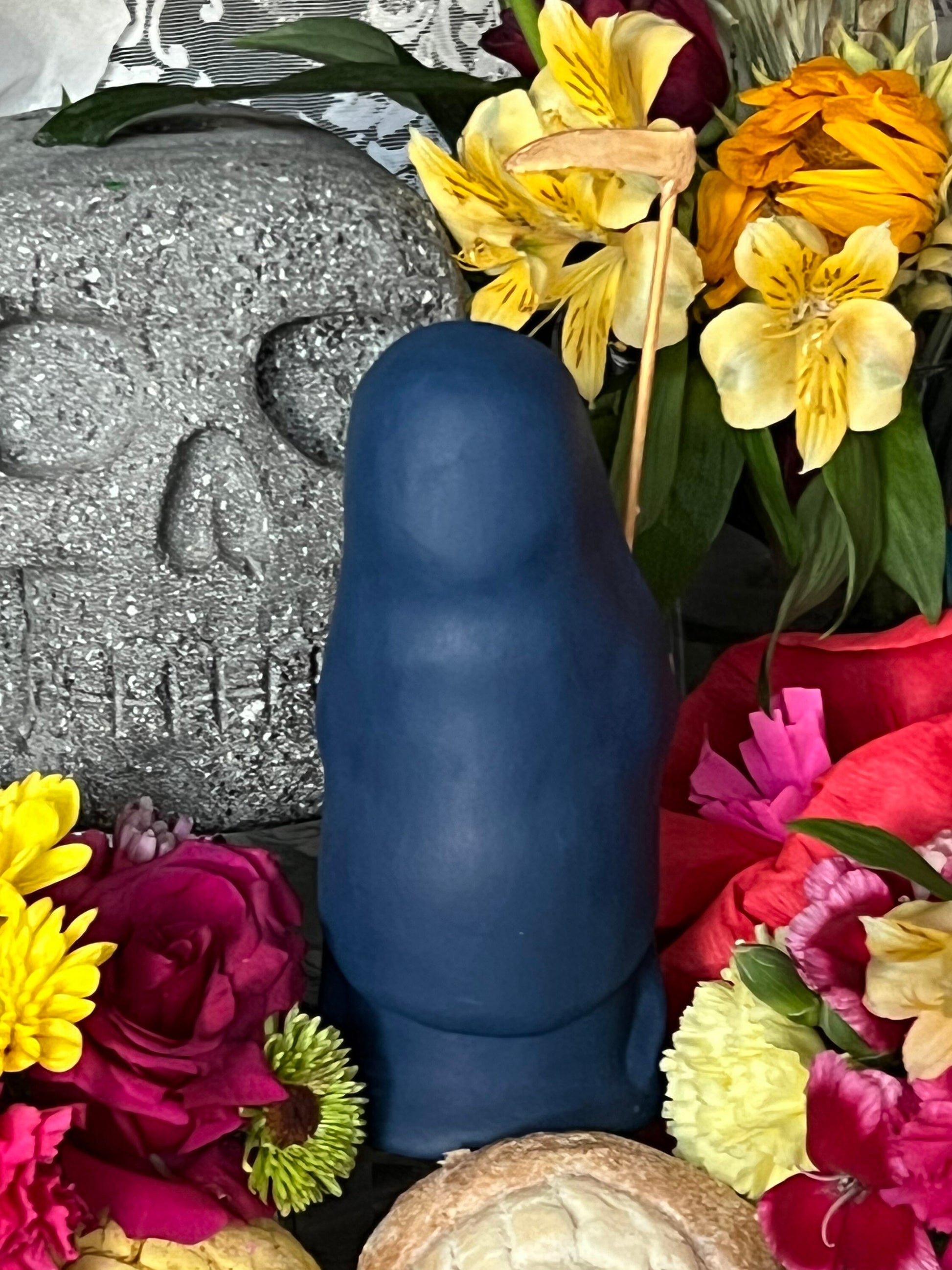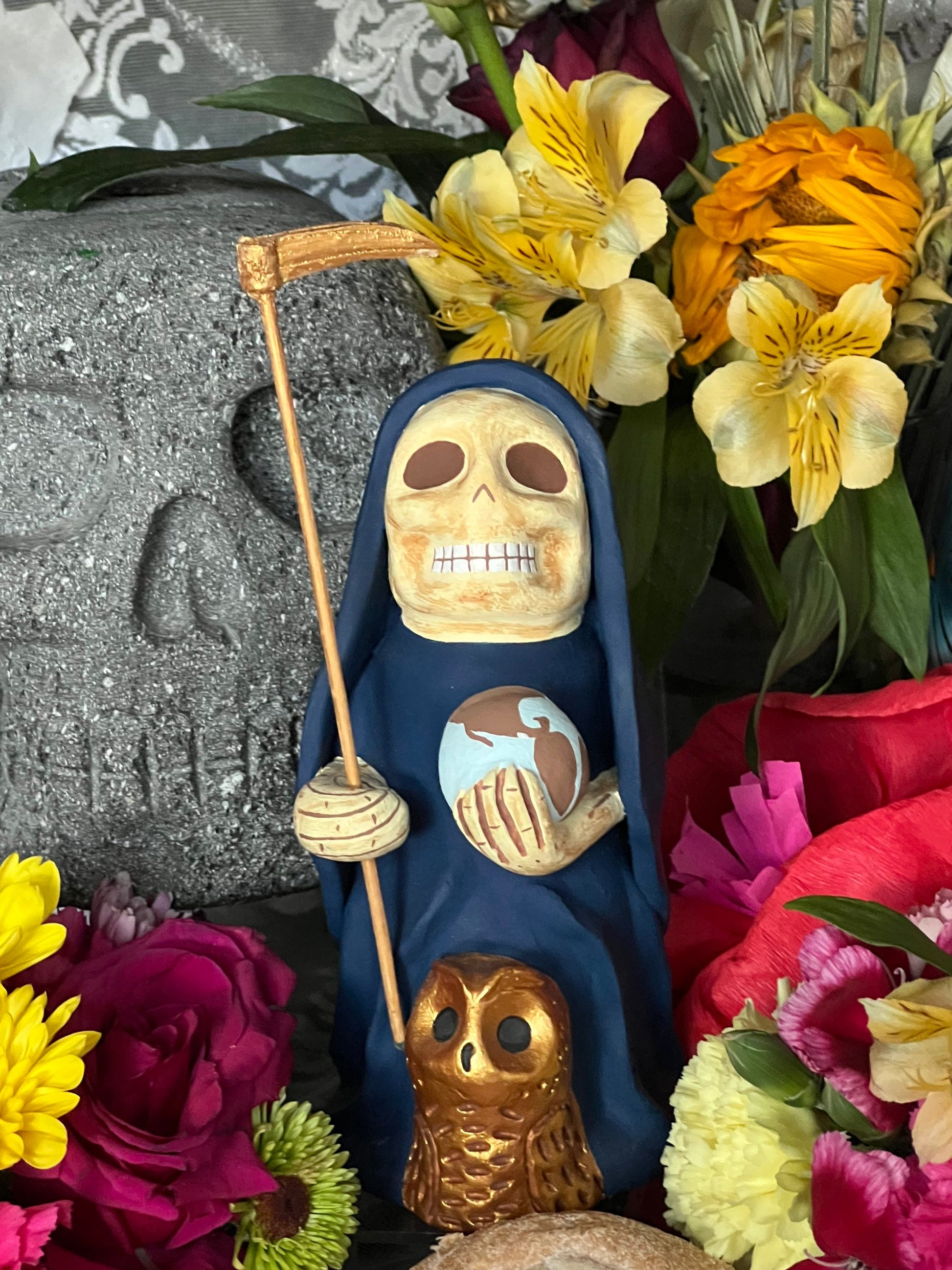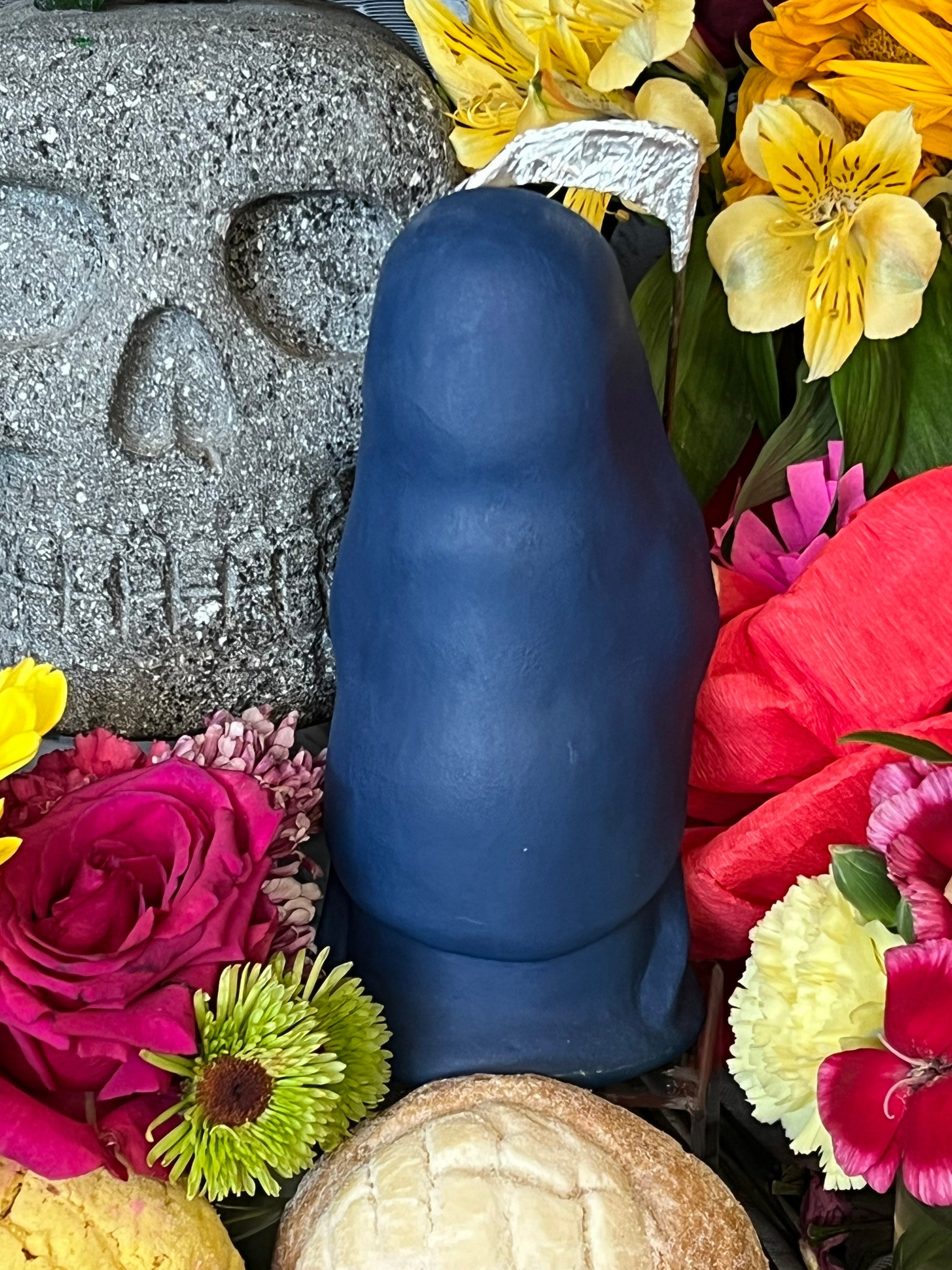 Santa Muerte Azul Statue + Blue + Mictecacihuatl + Mictlantecihuatl + Traditionally Handcrafted from Mexican Clay + One of a Kind