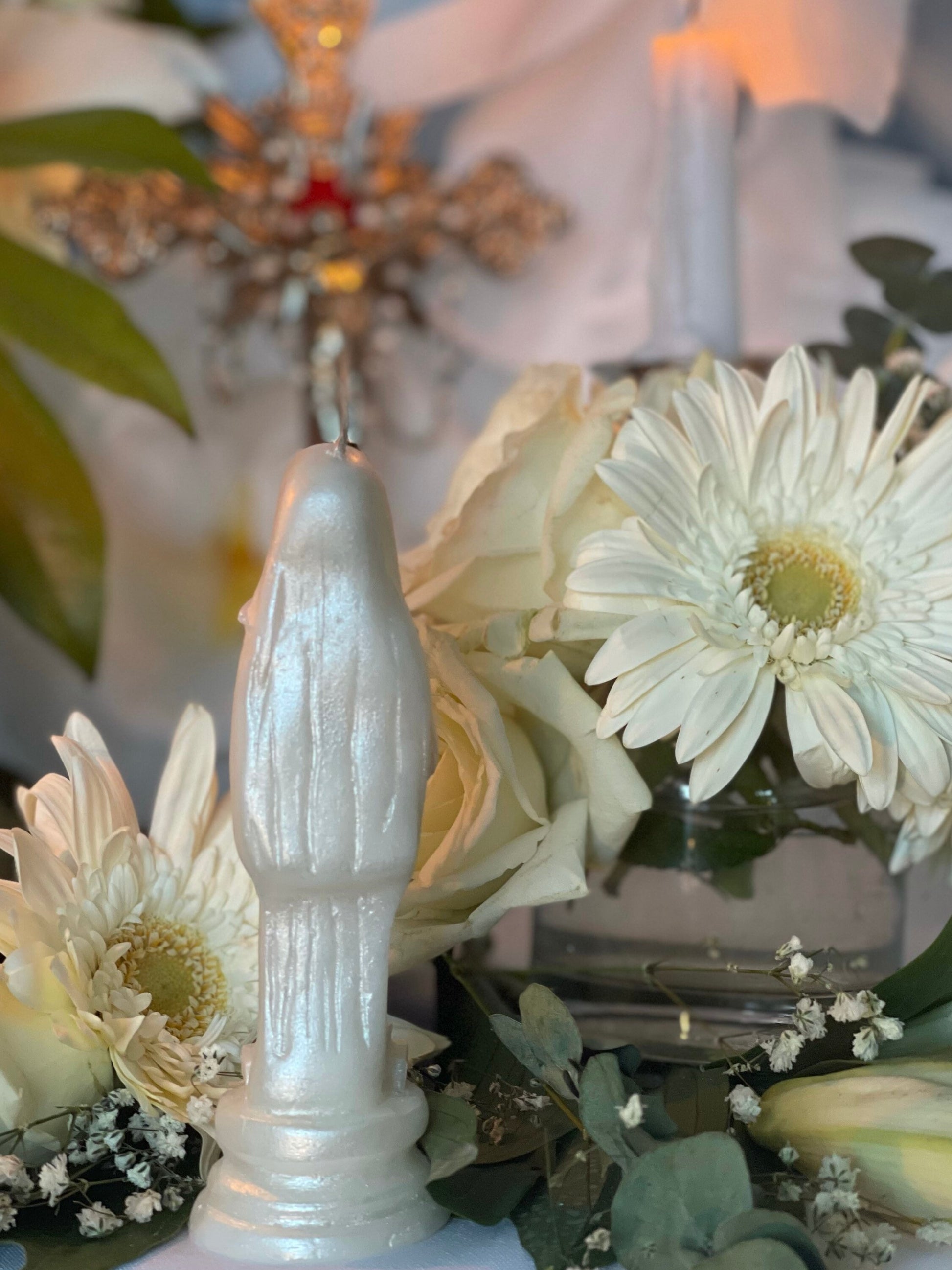 Santa Muerte Blanca Figure Candle + Blessed + Purity + Psychic + Healing
