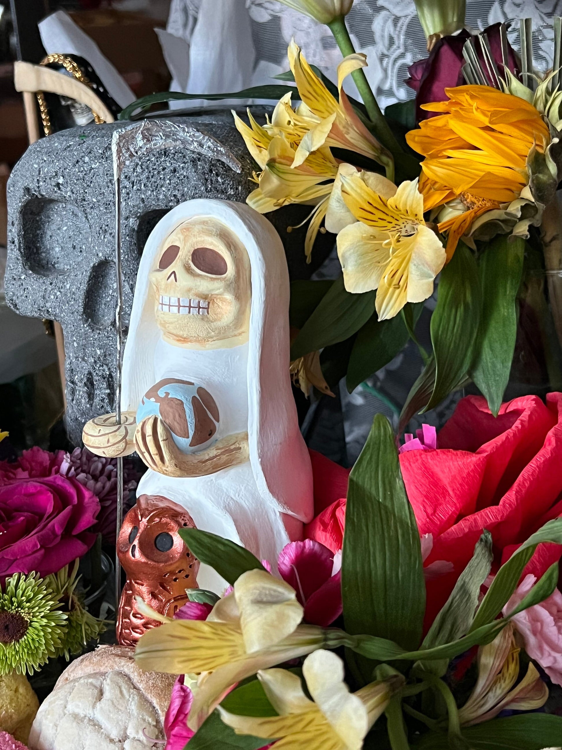 Santa Muerte Blanca Statue + Mictecacihuatl + Mictlantecihuatl + Traditionally Handcrafted from Mexican Clay + One of a Kind