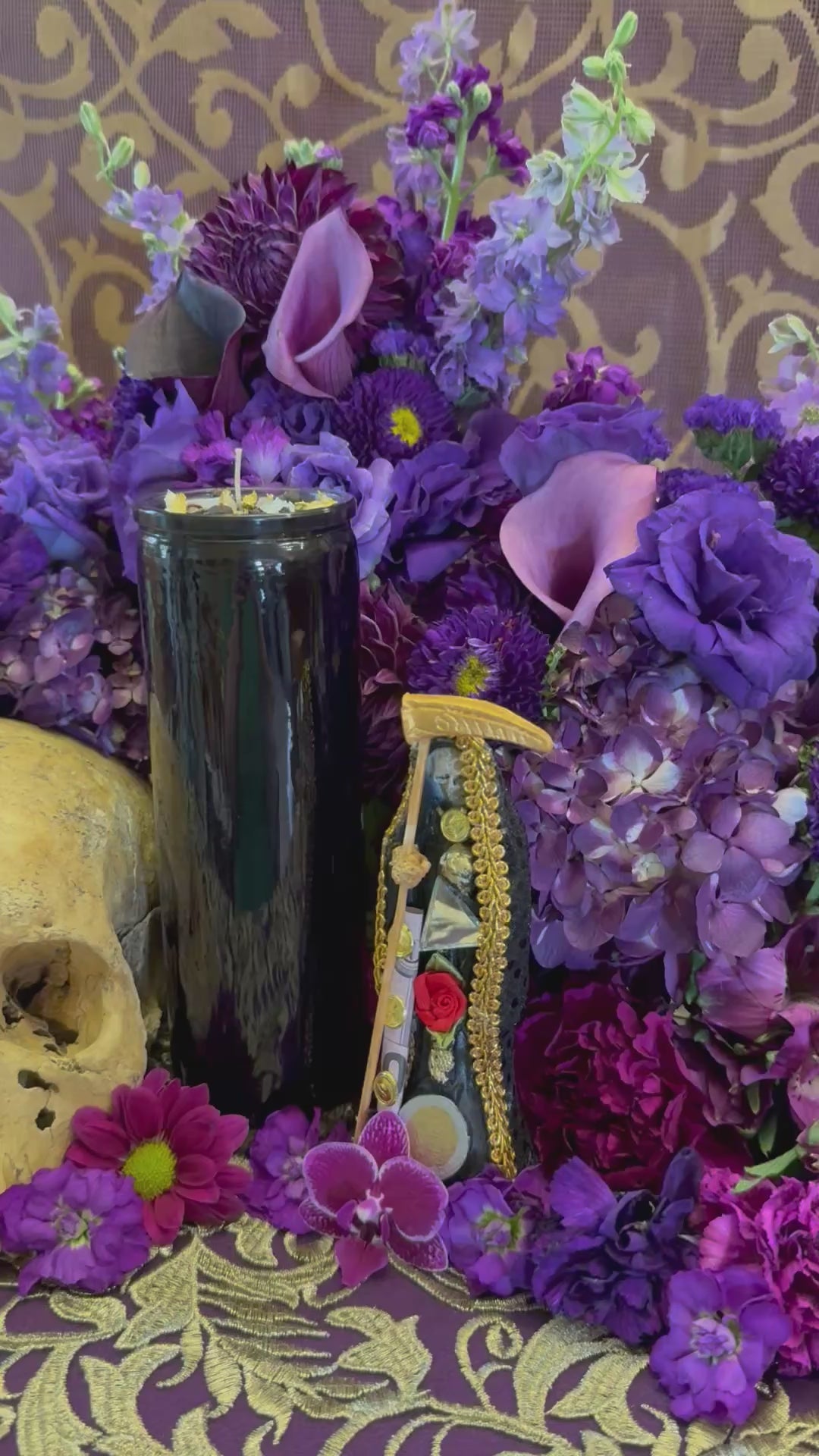 Our Santa Muerte oils are handcrafted by Sancista Jennifer with the highest quality traditional and divined ingredients available. She created them on Santa Muerte's feast day, prayed over them for 9 days, and charged them on her altar. Through divination, Santa Muerte gave Sancista Jennifer the ingredients for this collection. There are over 40 ingredients in each oil.