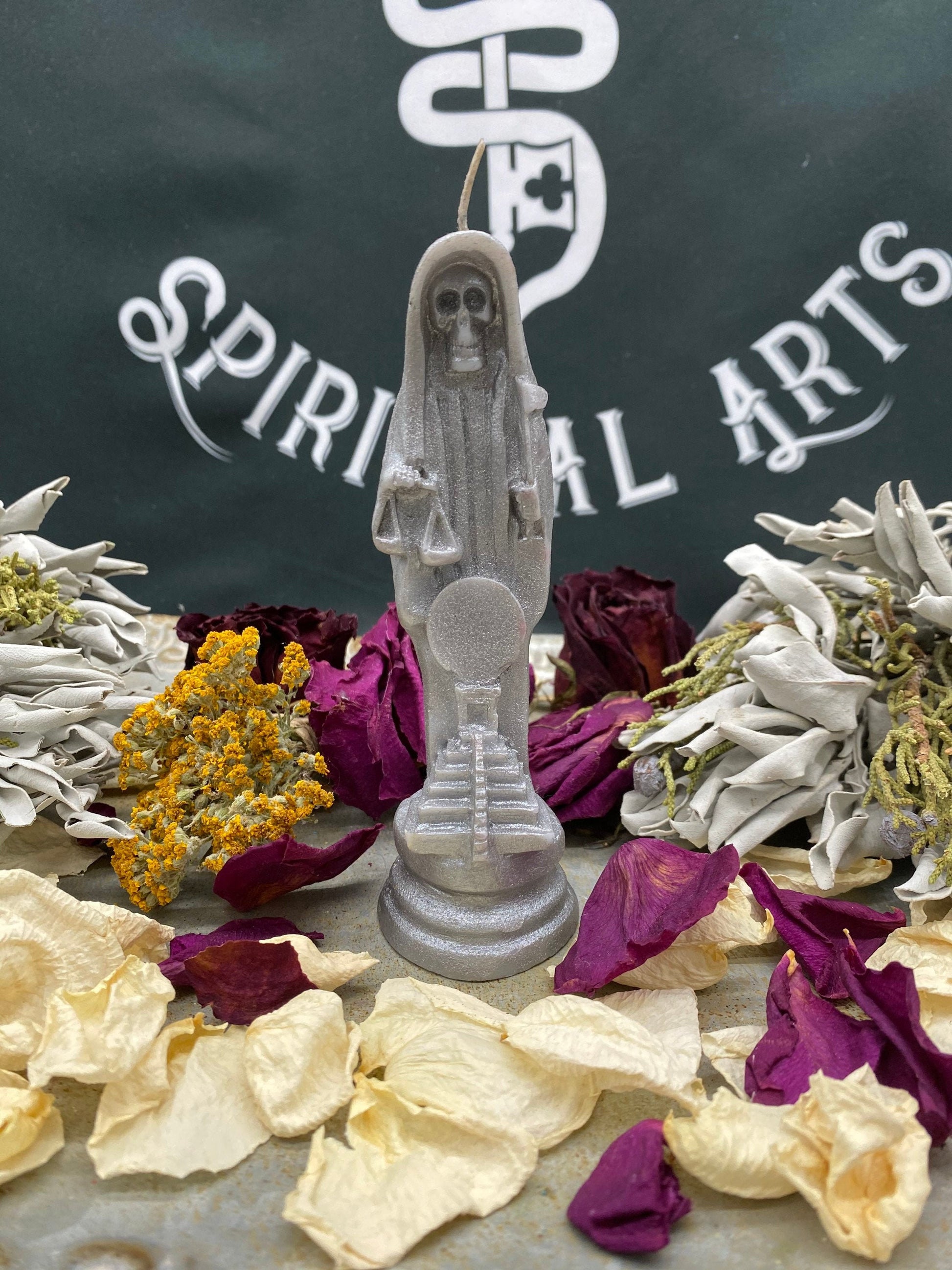 Santa Muerte Plata Figure Candle + Sterling Silver + Improve Finances + Gambling