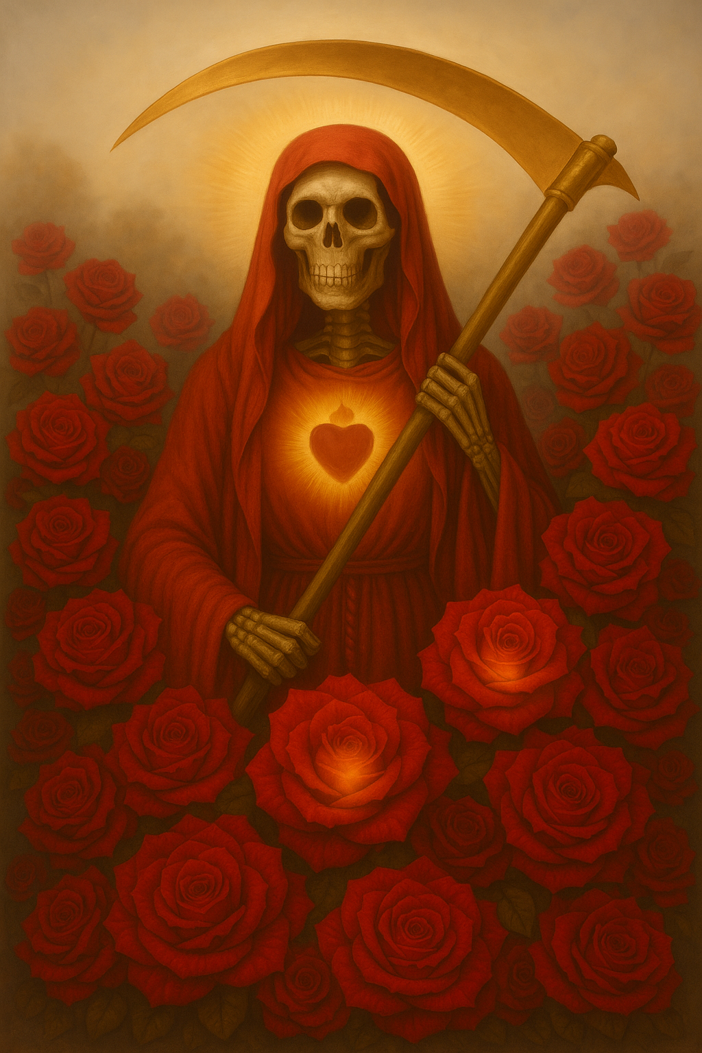 Santa Muerte is a Mexican folk Catholic saint of death who has many names such as La Santisima Muerte, La Nina, and La Huesita. La Santa Muerte is the embodiment of death with the highest power over life of any spirit or saint—second only to God. Many venerate her as she accepts people from all walks of life and does not discriminate against LGBTQ+, sex workers, criminals, and gang members. Many depict her as a grim reaper-like skeleton holding a scythe, scales, or a globe. La Santa Muerte has three traditional robes or personalities: white (La Blanca), red (La Roja), and black (La Negra). Each robe represents a different side of her. La Roja represents love, money, prosperity, fertility, passion, justice, legal issues, fidelity, and marriage. This spell includes using a pig heart.