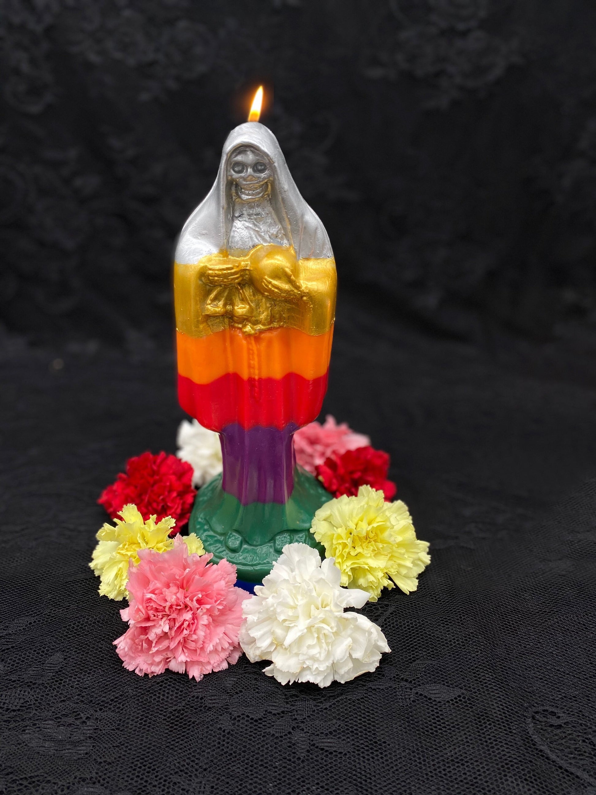 La Santa Muerte Siete Colores is helpful for any condition and is often considered the patroness of all of those who are LGBTQI+. This is an all-purpose ritual set.