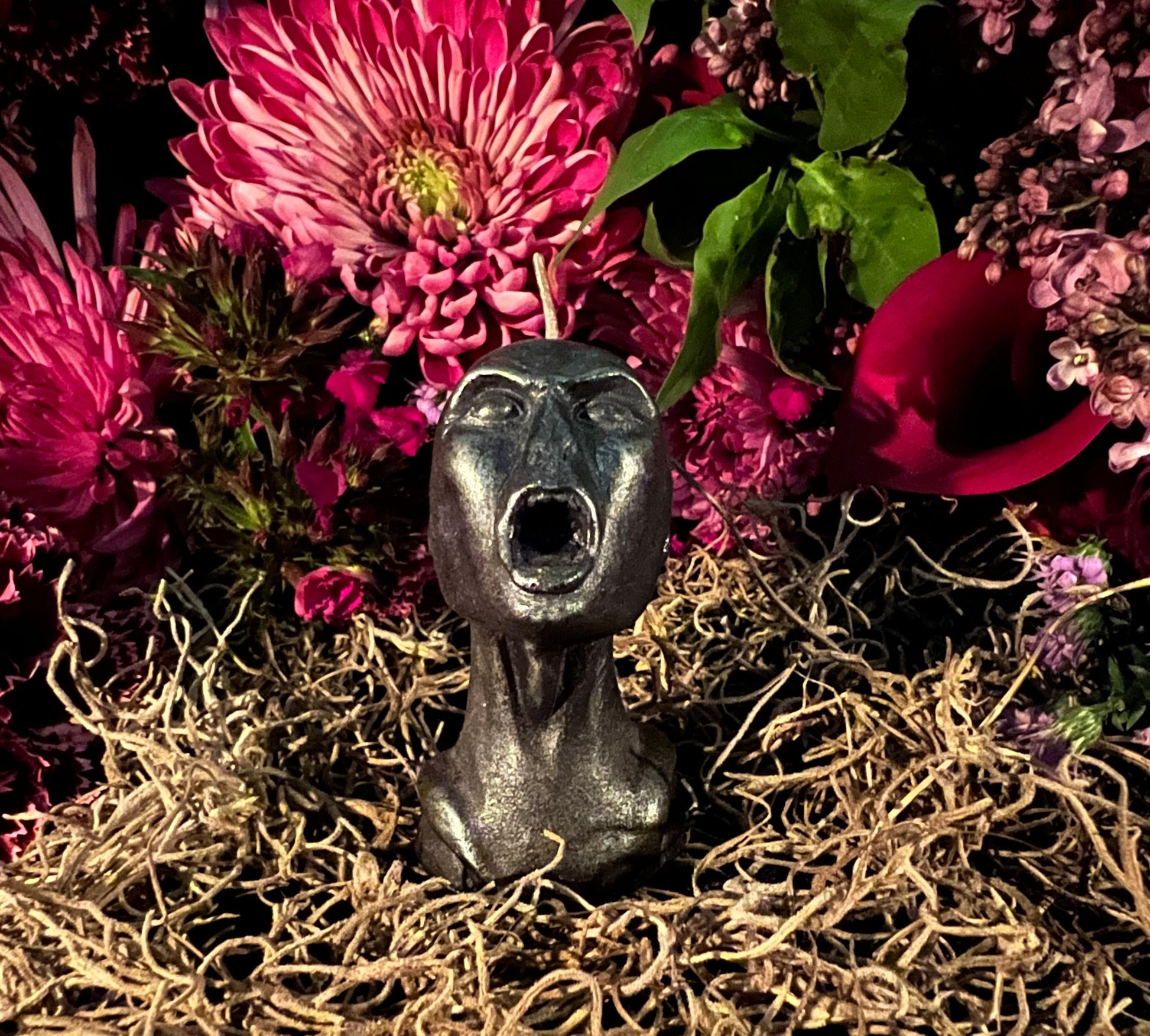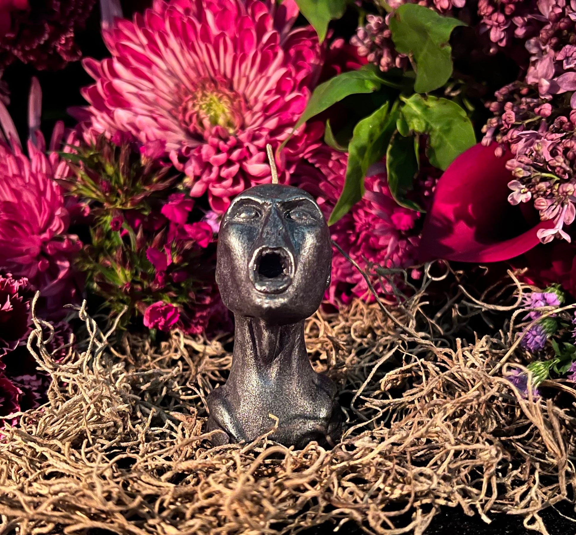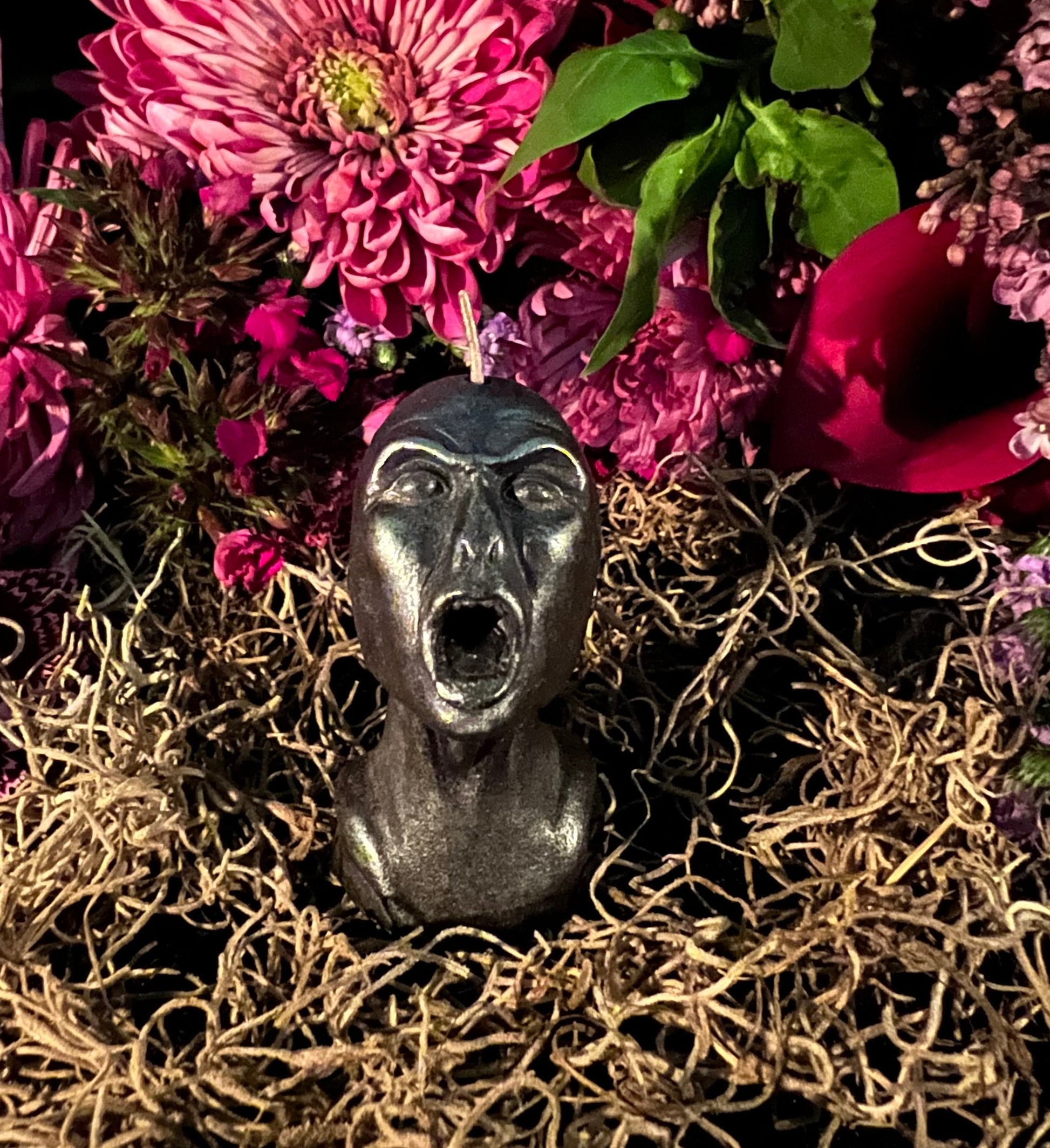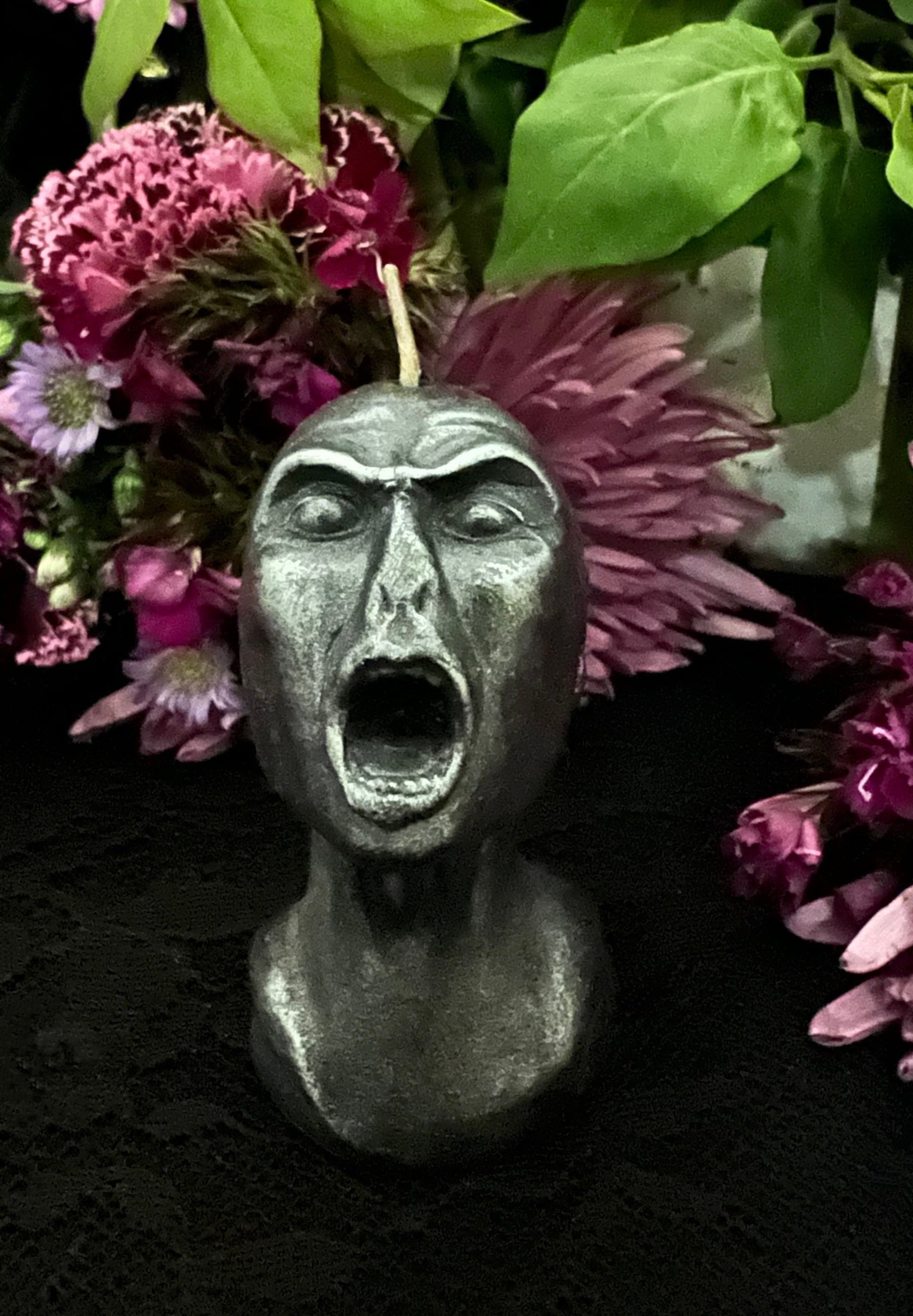 We’re offering a Screamer Candle that measures approximately 3” x 2” x 2”. It has an organic hemp wick and is made from paraffin and soy wax.