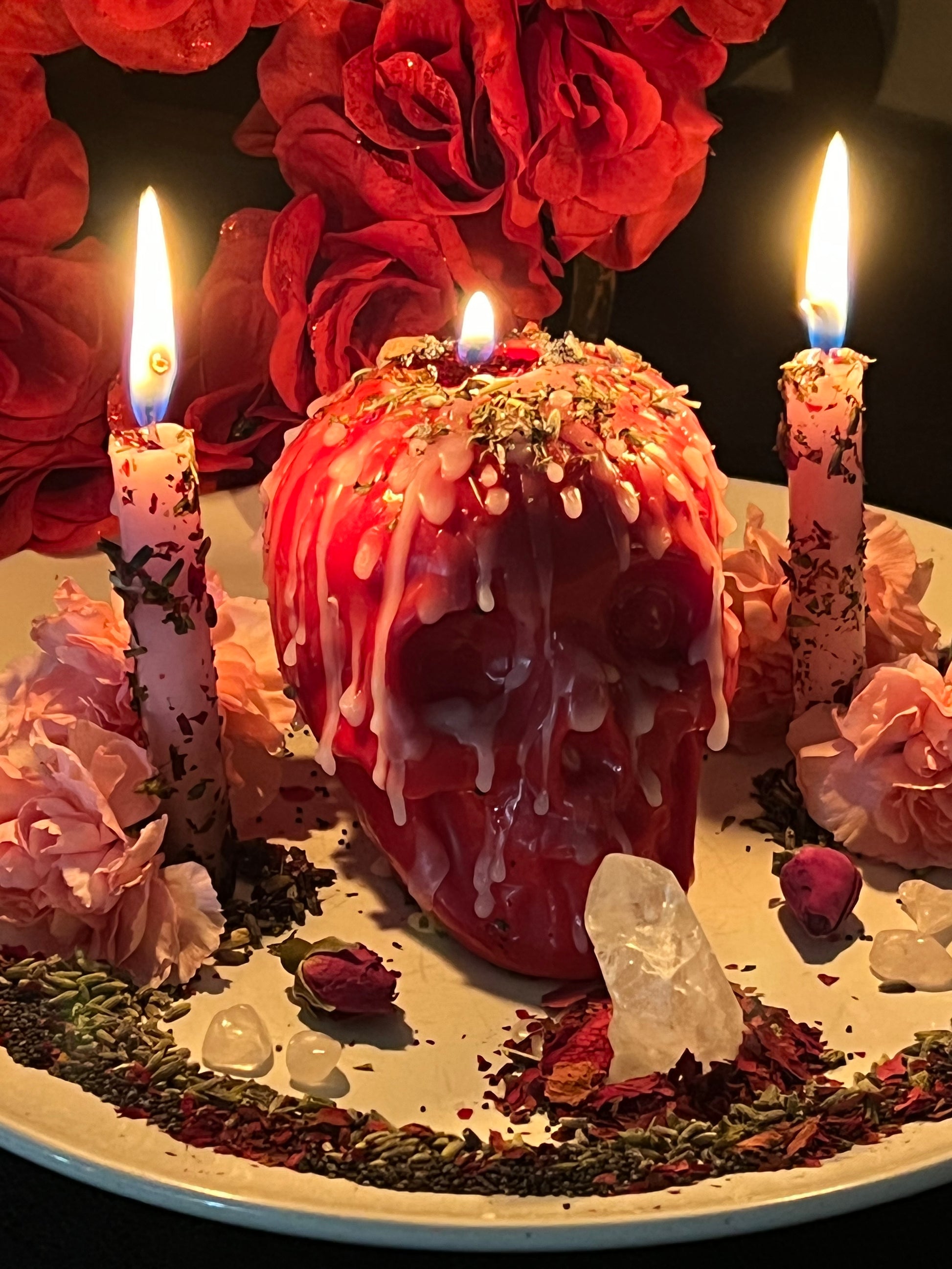 Skull Candle workings can influence someone’s thoughts and behavior in your favor. We speak to the candle what you wish in order to tame and guide the thoughts and actions of your target. We also use influencing and dominating herbs along with pins to implant the thoughts firmly in their minds. This working can help with love, reconciliation, employers, judges, job interviews, admission acceptance, and in any situation where you want to influence someone.