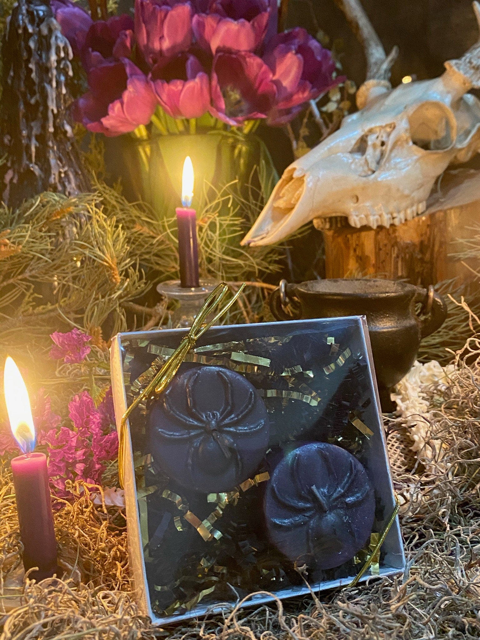 Spider Tealight Candles + Gift Box + Santa Muerte + Samhain + Halloween