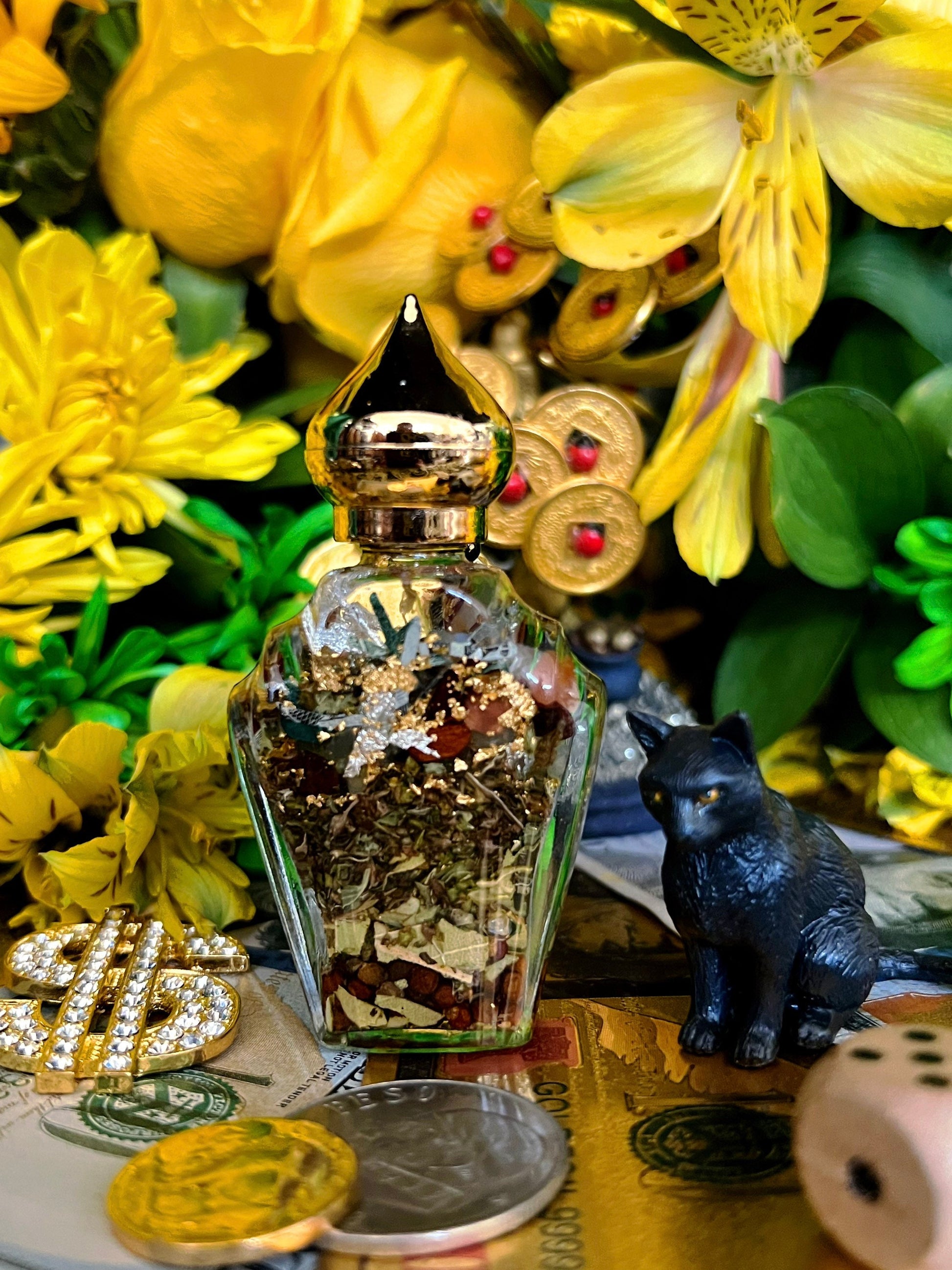 Our oil contains black cat hair and myrrh along with a traditional bone in the master.