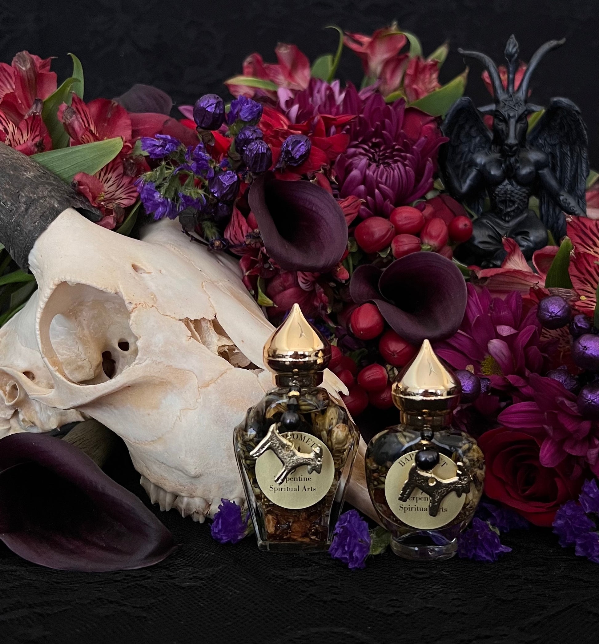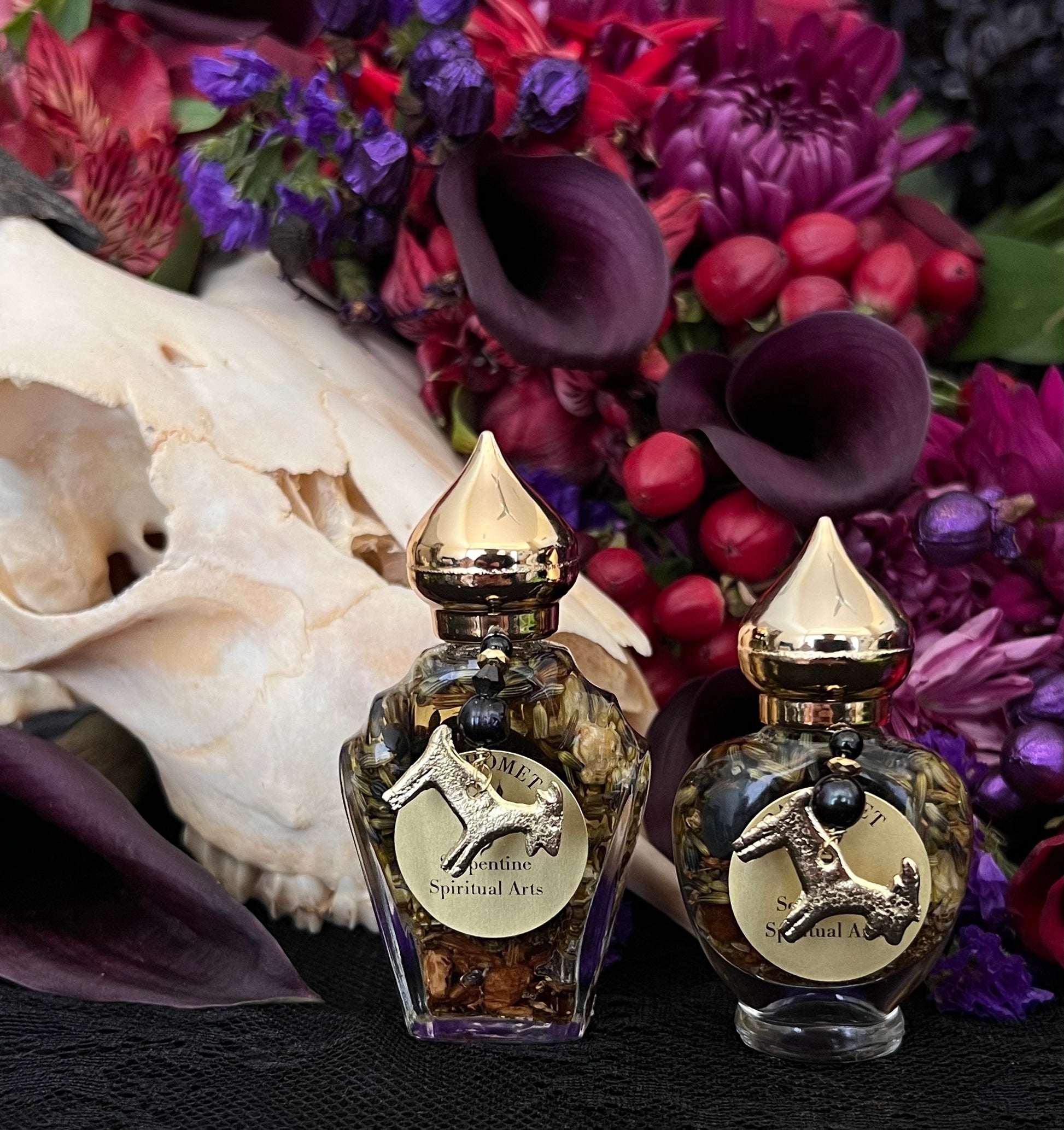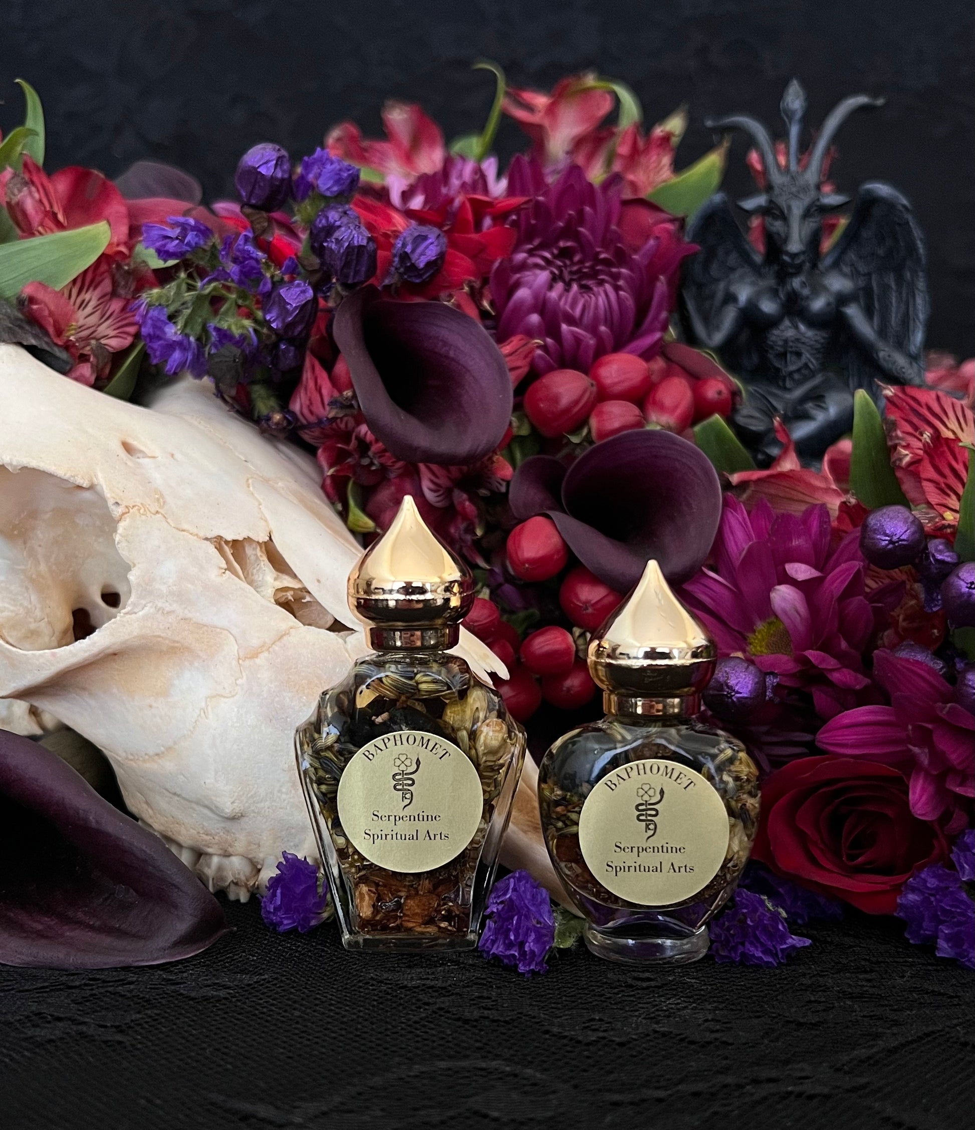 Our Baphomet Oil helps bring balance and aids in manifestation. It is also useful for divinity and lust. A practitioner can use it with other workings to bring desired results. We incorporated all four elements in this oil. We made the oil with patchouli oil that has aged for several years and other rare ingredients. It smells divine. One can use this oil in ritual or during meditation. One may wear it as well, but it is not hypoallergenic and is for curio use only.