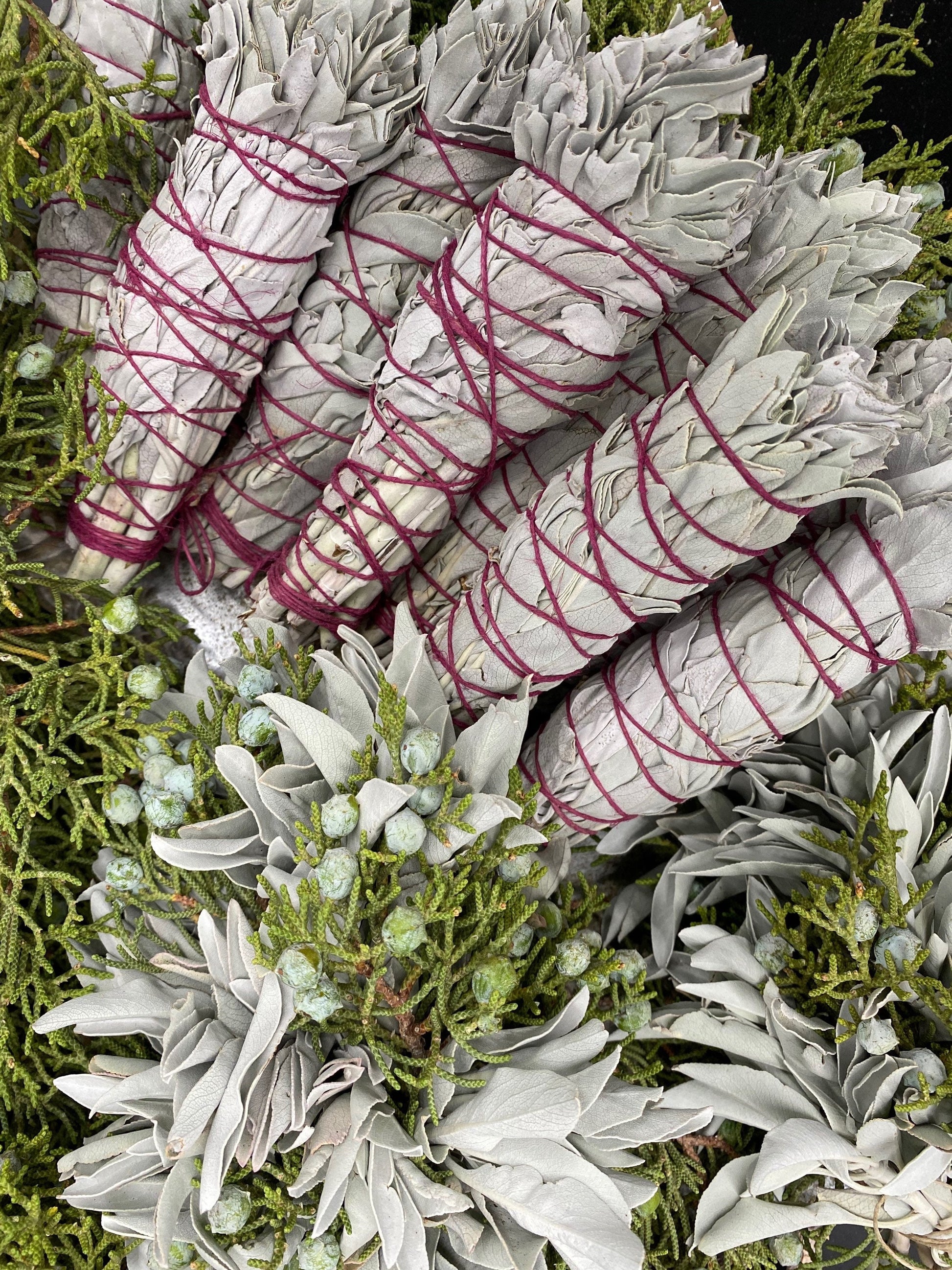 We’re offering bundles of white sage that we wildcrafted near our home in the desert. We wrapped them with hemp twine that we naturally dyed. They measure approximately 7” to 8”. They are fresh, high quality, and smell divine. They are useful for protection, purification, and cleansing. We paid the plants that we collected the leaves from and left enough of the plants that they’ll continue to grow well. La Santa Muerte has asked us for sage, so we sometimes use it as an offering, in her products, or during rituals. Our clients have loved how fresh our bundles are. We hear they are the freshest and best smelling of any bundles our clients have tried.