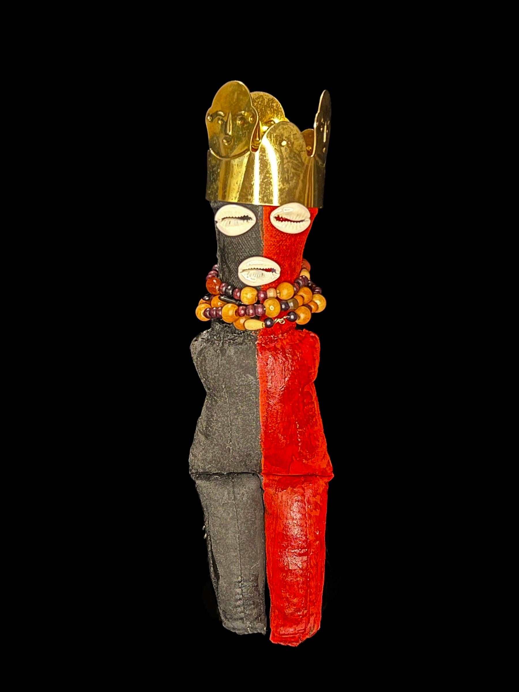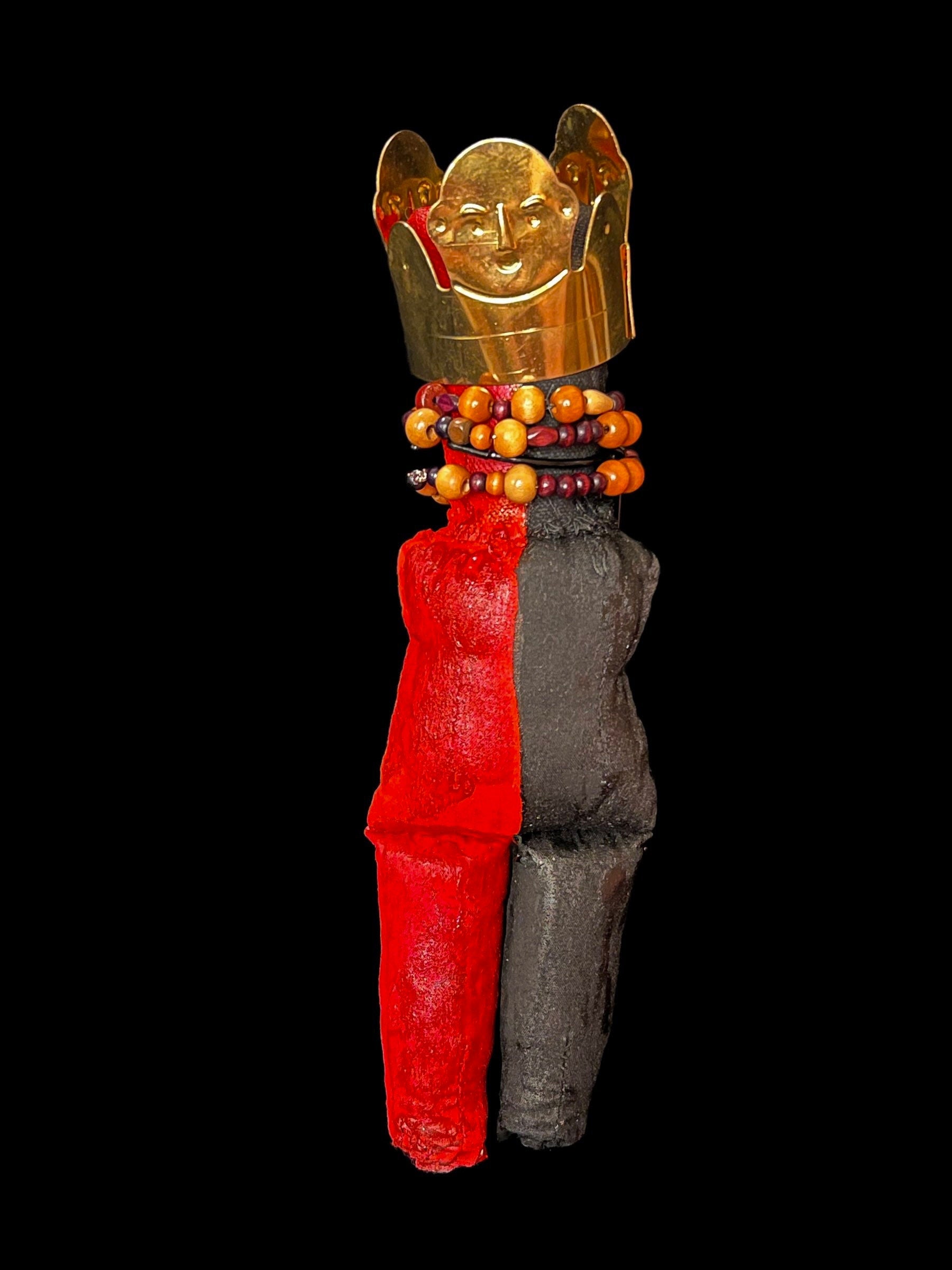 Our New Orleans Elegua Doll is handcrafted, hand sewn, hand painted, and blessed. It is decorated with vintage adornments.