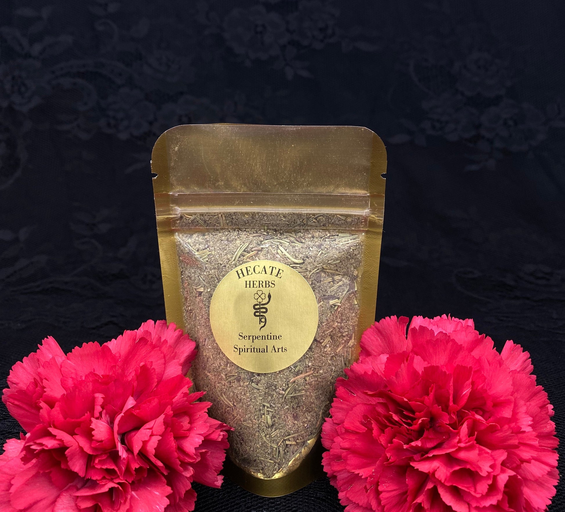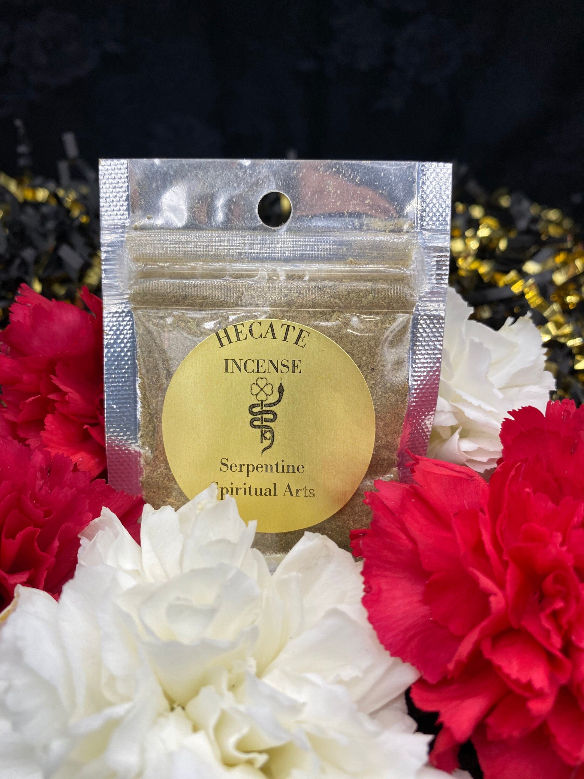 This is handcrafted by Jennifer with the highest quality traditional and divined ingredients available. Through divination, Hecate gave Jennifer the ingredients for this collection. Our Hecate Ritual Set includes the following: Oil (1/3 ounce) Incense (0.2 ounce) Bath (0.7 ounce) Candle Dressing Herbs (0.7 ounce) Pillar Candle (6”x 2”) All of these items together usually cost $73.00, but the set is discounted. There is the option to upgrade the incense from 0.2 ounce to 1 ounce.