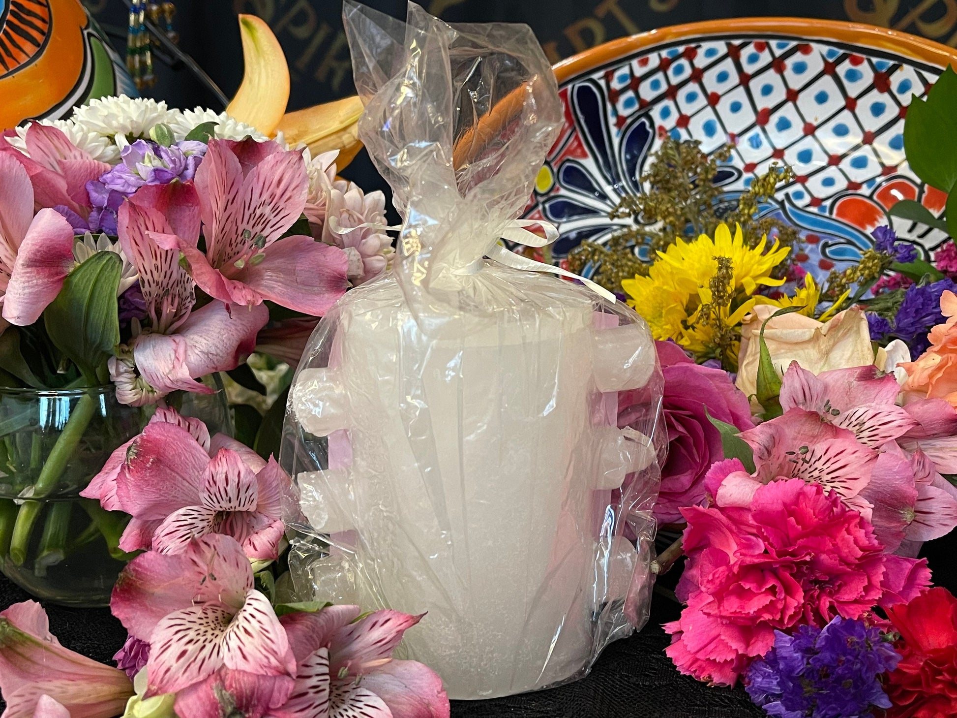 CANDLES: DO NOT LEAVE CANDLES BURNING UNATTENDED. BURN THE CANDLE ON A FLAT AND HEAT RESISTANT SURFACE. KEEP AWAY FROM COMBUSTIBLES. KEEP AWAY FROM CHILDREN.
