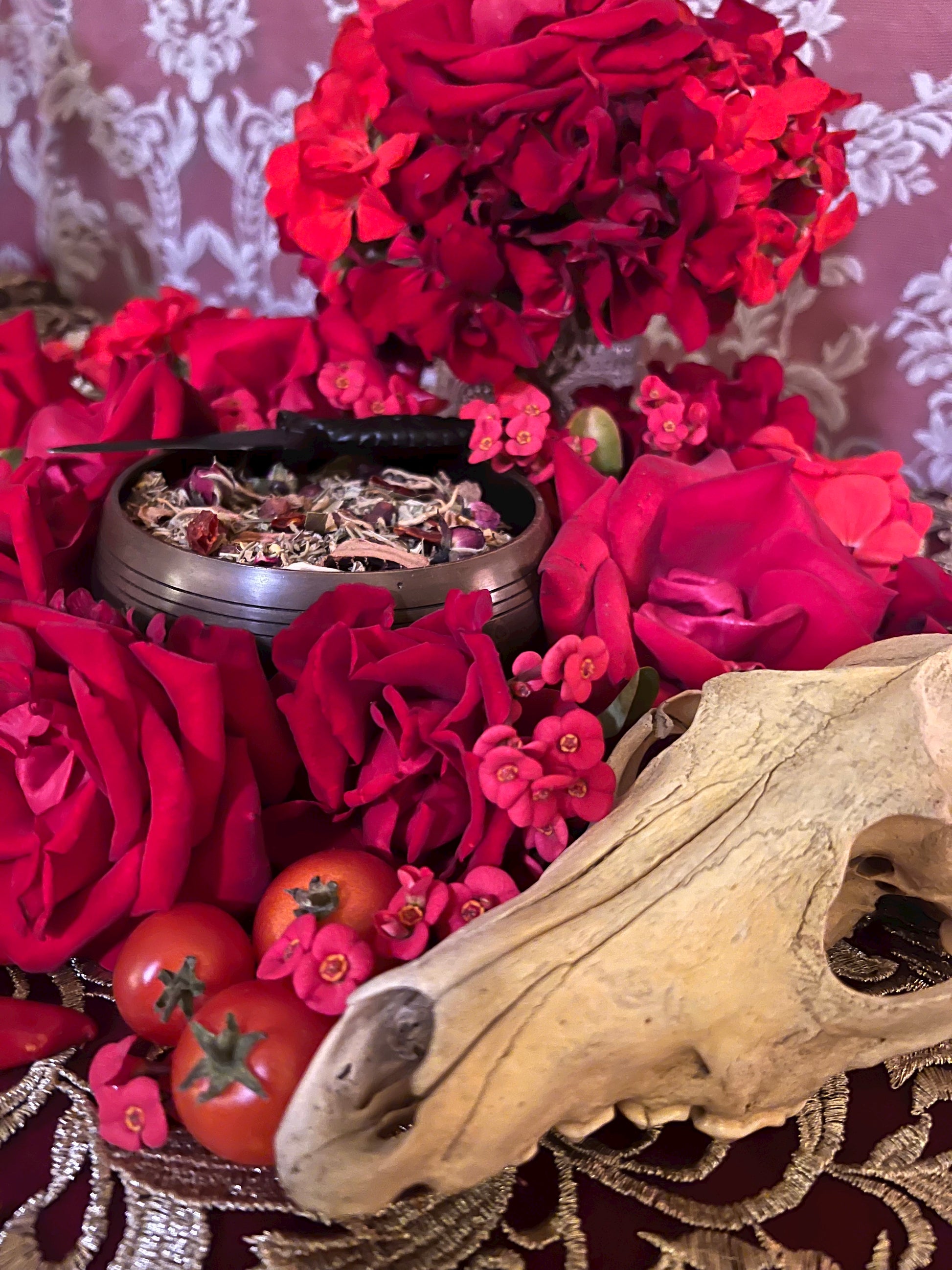 Herb blends are often used for fixing candles, dressing workings, and stuffing doll babies and mojo bags.