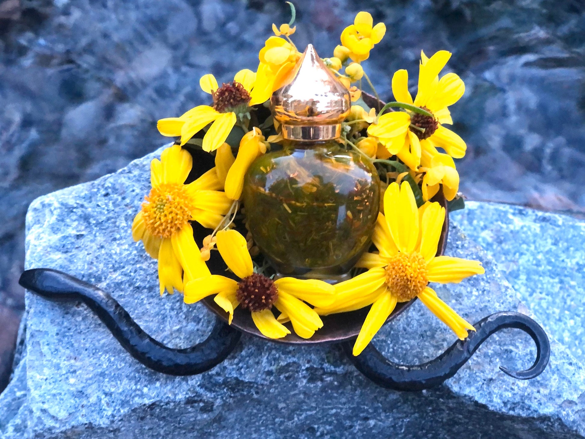 On September 8th, we celebrated the feast day of the beautiful and incredibly powerful orisha Ochun. She is the spirit of love, attraction, marriage, commitment, luxury, prosperity, abundance, clarity, diplomacy, unconditional love, and seduction. She rules over money and the rivers. Ochun can help with feeling more beautiful and sensual, attracting attention, becoming magnetic and spiritually and physically attractive, bringing a marriage-minded partner or commitment to an existing relationship, increasing wealth, soothing sadness or loneliness, and drawing love and kindness from people in general. In Sanse (Puerto Rican Vodou), each spirit syncs with a Catholic saint. Ochun syncs with Virgin de la Caridad del Cobre, the patron saint of Cuba. We work with both the Lwa and the Orisha in Sanse. This oil is handcrafted by Sancista Jennifer with the highest quality traditional and divined ingredients available. She created it on Ochun’s feast day, prayed over it for 9 days, and charged it on her altar. She decorated the bottles with various gemstones and Czech glass beads. There are over 10 ingredients in this oil. Some of them include gold, citrine, and honey. The master oil contains a stone from the Oshun river in Nigeria. It comes in a luxurious 1/3 or 1/2 oz bottle.