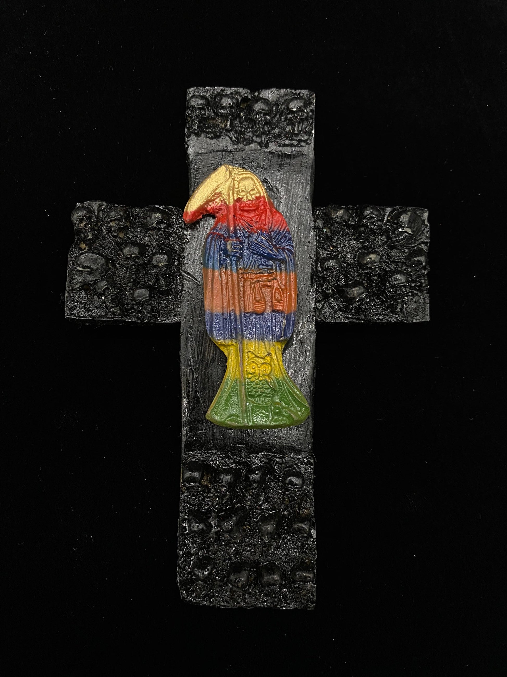 Santa Muerte Siete Colores Altar Cross 5” + Love + Made in Mexico