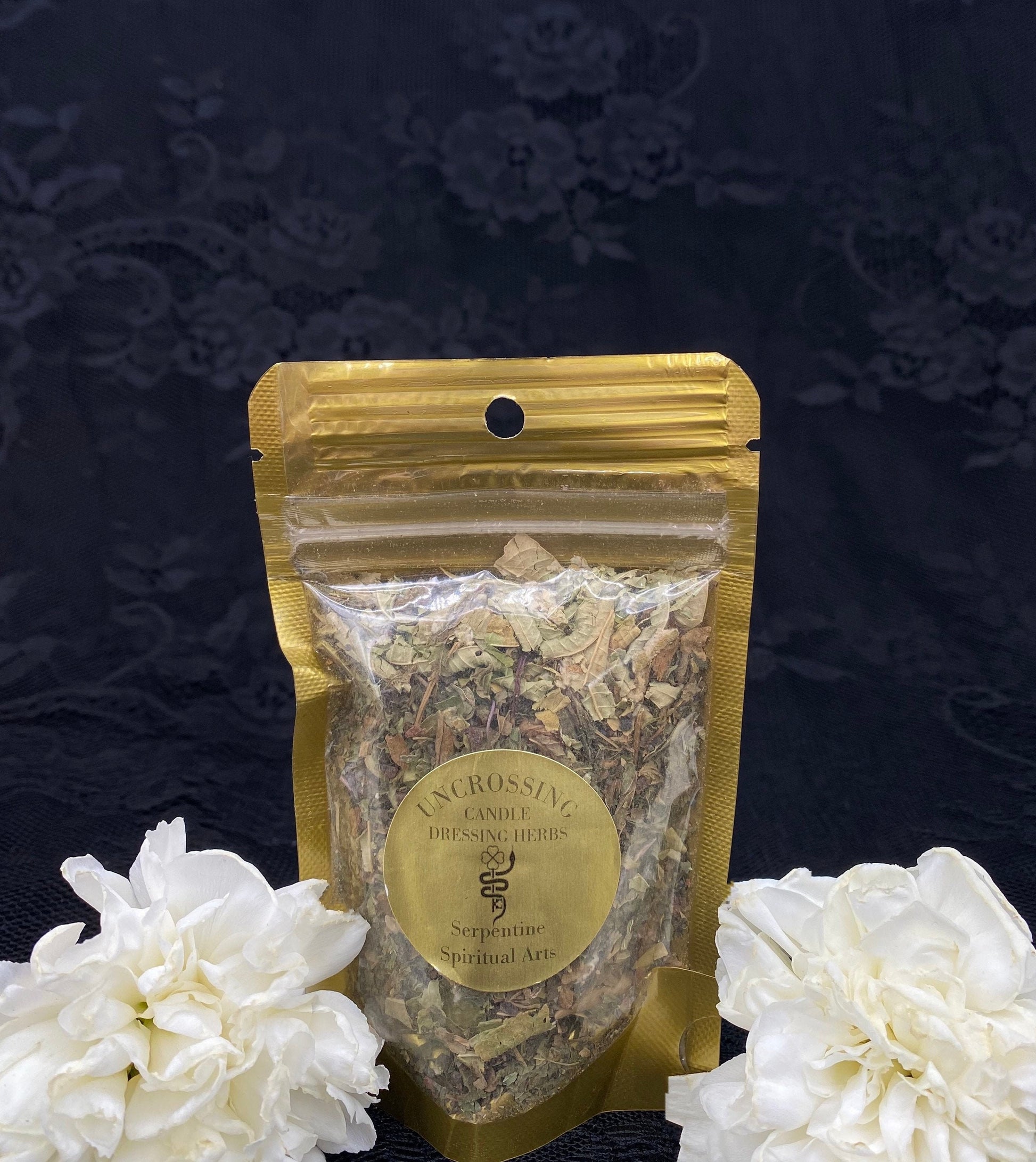 Use our Uncrossing Herbs to neutralize jinxes, curses, hexes, and evil eye. Praying Psalms 91, 17, 37, and 51 each three times while using these herbs may further help remove negative energy. These herbs are all natural with no fragrance oils or dyes, and they contain mostly organic ingredients. The bag weighs approximately 1 or 3 oz and contains mostly organic and wildcrafted ingredients and herbs. This pairs well with our Uncrossing Oil and Candles, which are not included.